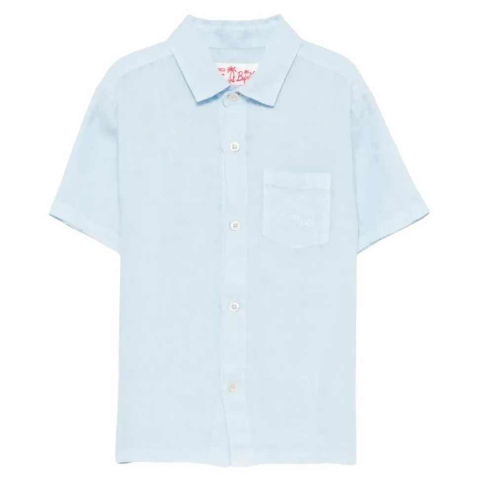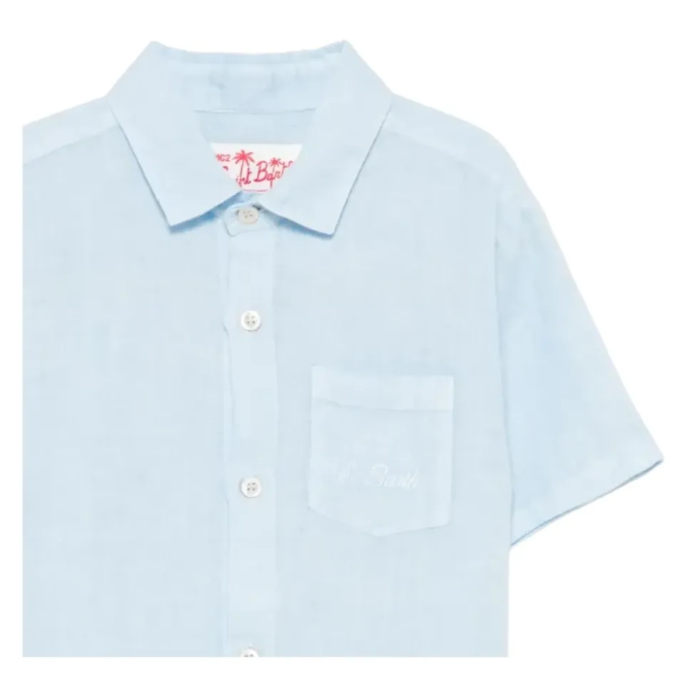 MC2 Saint Barth Linnen overhemd in een lichtblauwe tint, gemaakt van puur linnen voor een ademende, warme weersdracht. Voorzien van een klassieke kraag en korte mouwen voor een strakke, casual look. Belangrijkste kenmerken: Blauw | Azzurra | Linnen | Borstzak | Klassieke kraag | Korte mouwen | Logo borduursel | Rechte zoom | Borstzak | Afmetingen & pasvorm: Regular fit | Samenstelling & onderhoud: 100% linnen | Machinewas koud op een fijnwasprogramma; niet bleken. Drogen op lage temperatuur of aan de lijn. Warm strijken indien nodig.