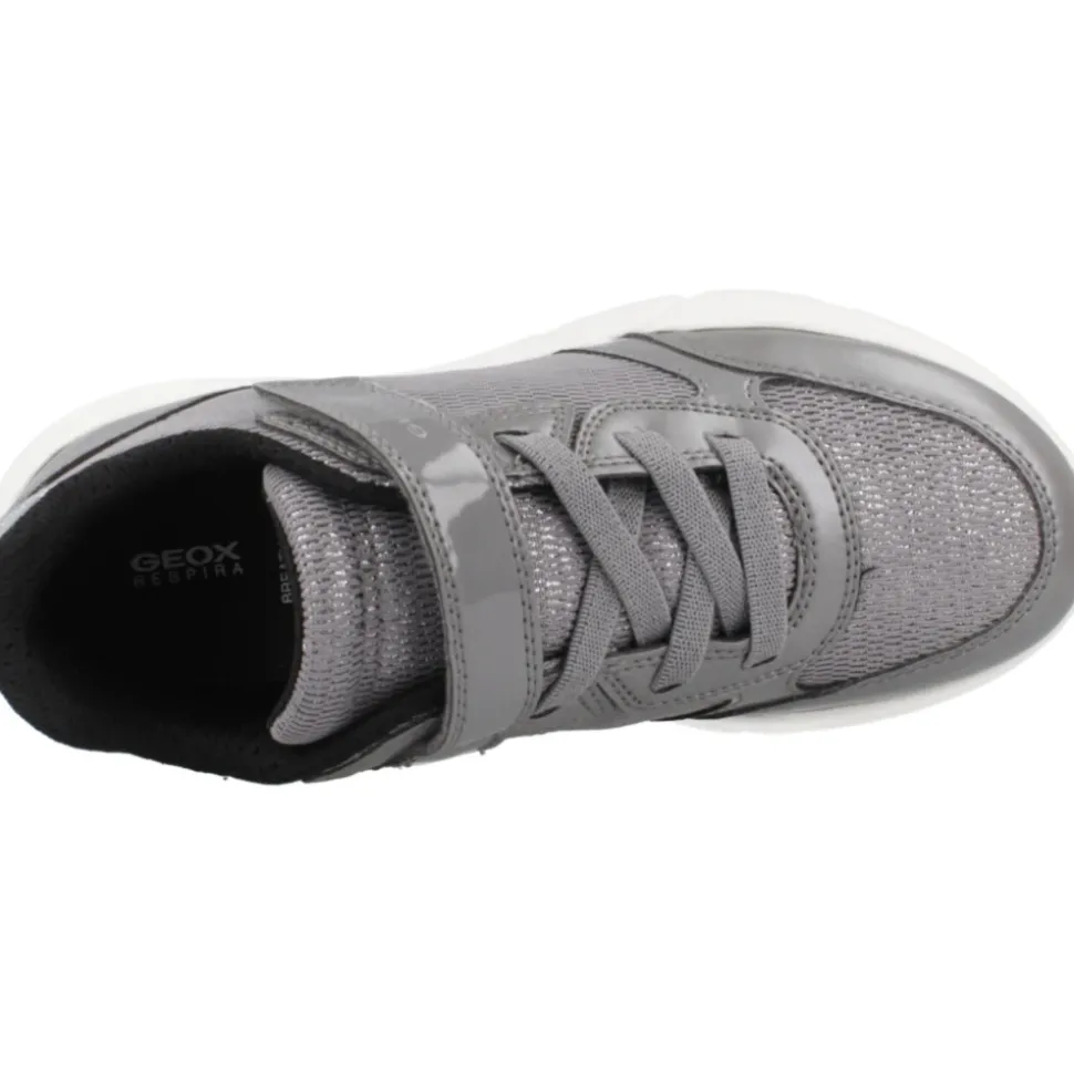 Geox Loftus is een lage sneaker in running-stijl, ontworpen voor dagelijks comfort. Hij combineert de ademende Respira-zool van het merk met een verstelbare klittenbandsluiting voor snel aan- en uittrekken. Belangrijkste kenmerken: Grijs | Synthetisch en textiel | Ademende Respira-zool | Demping | Lichtgewicht en flexibel | rubberen buitenzool | Klittenbandsluiting met elastische veters voor eenvoudig vastmaken | Uitneembare binnenzool | Snel aan- en uittrekken | Laag model, silhouet van een hardloopschoen | Verstevigde neus | Decoratieve details | Afmetingen & pasvorm: Gemakkelijk verstelbare pasvorm via klittenbandsluiting | Samenstelling & onderhoud: Bovenkant: Synthetisch en textiel | Voering: Textiel | Binnenzool: Textiel | Buitenzool: Rubber | Constructie: Gelijmd