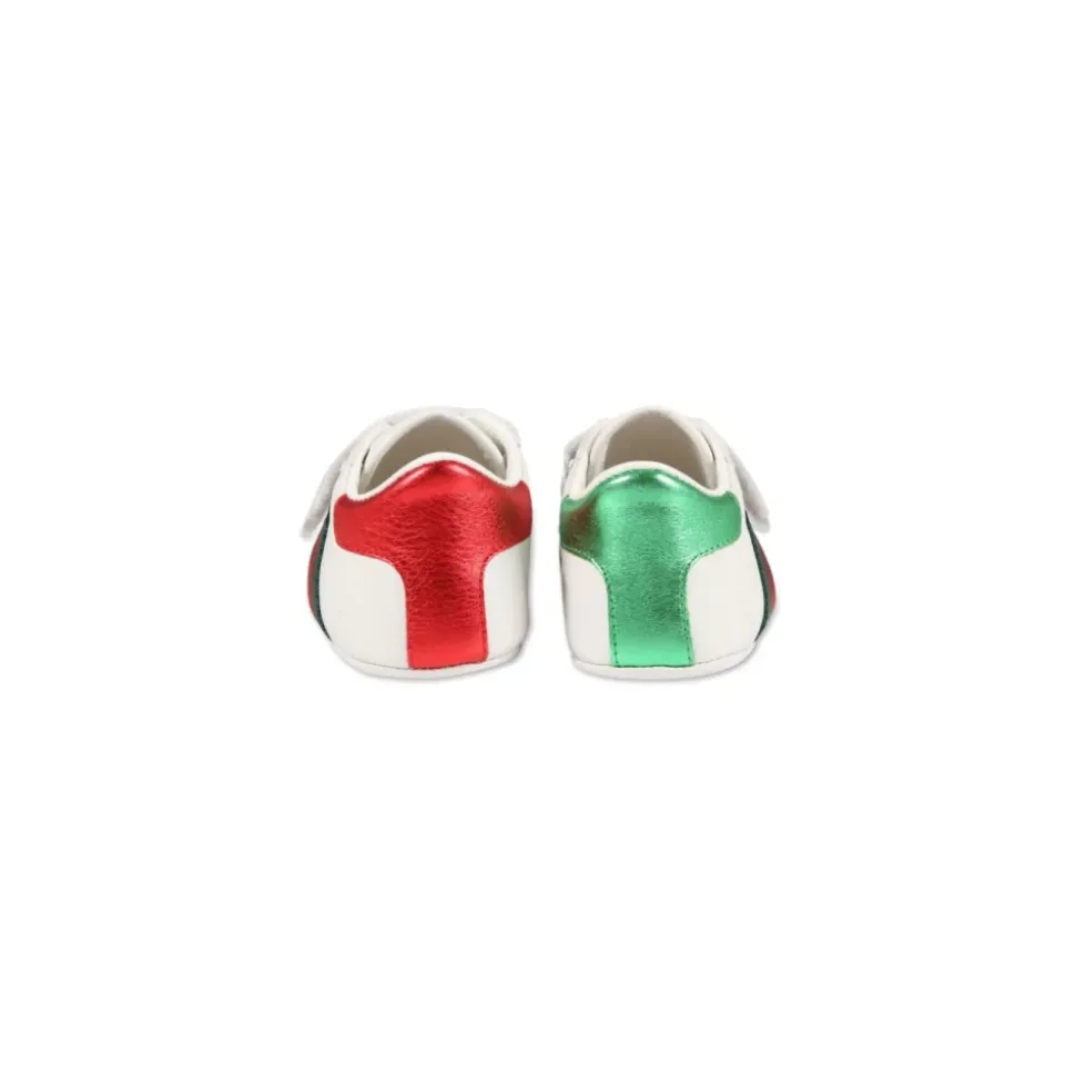 Gucci kindersneakers met klittenbandsluiting aan de voorkant, ronde neus en platte leren zool. Buitenkant: 100% leer Zool: 100% leer Voering: 100% leer. Productcode: 500852BKPT0.