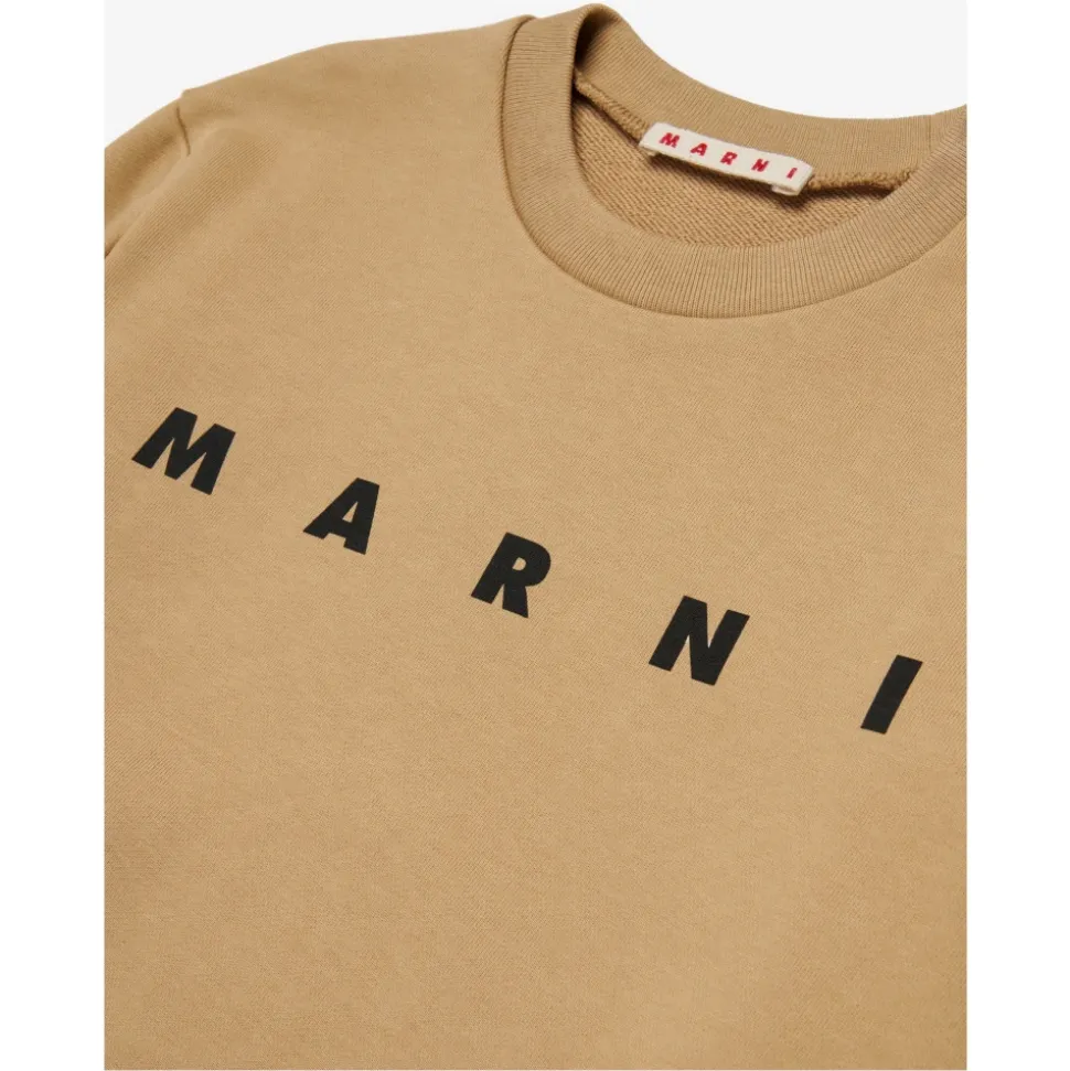 De Marni Logo Sweatshirt combineert een strakke ronde hals met het kenmerkende logo van het merk voor eenvoudige, high-fashion layering. De zachte katoenen constructie en neutrale beige tint maken het gemakkelijk om te combineren met verschillende outfits. Belangrijkste kenmerken: Beige | Katoen | Zachte katoenen constructie | Geribbelde manchetten en zoom | Ronde hals | Lange mouwen | Logo op de borst | Geribbelde manchetten en zoom | Afmetingen en pasvorm: Regular fit | Samenstelling en onderhoud: 100% Katoen | Fijne was (max. 30°C); Niet bleken; Koel strijken (max. 110°C); Niet chemisch reinigen; Niet in de droogtrommel; Plat drogen in de schaduw.