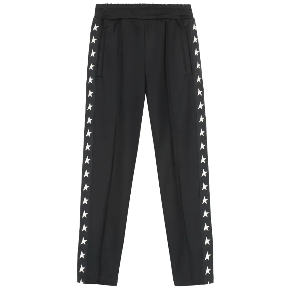 De Golden Goose Logoed Side Stripes Track-pants zijn sportieve trainingsbroeken ontworpen voor dagelijks gebruik, met logo-zijstrepen en een verstelbare tailleband met trekkoord voor een veilige, comfortabele pasvorm. Belangrijkste kenmerken: Zwart | Polyester | Verstelbare tailleband met trekkoord | Twee steekzakken | Logo-zijstrepen | Afmetingen & pasvorm: Jogging fit | Taps toelopende pijpen | Samenstelling & verzorging: 100% Polyester | Machinewas 30°C