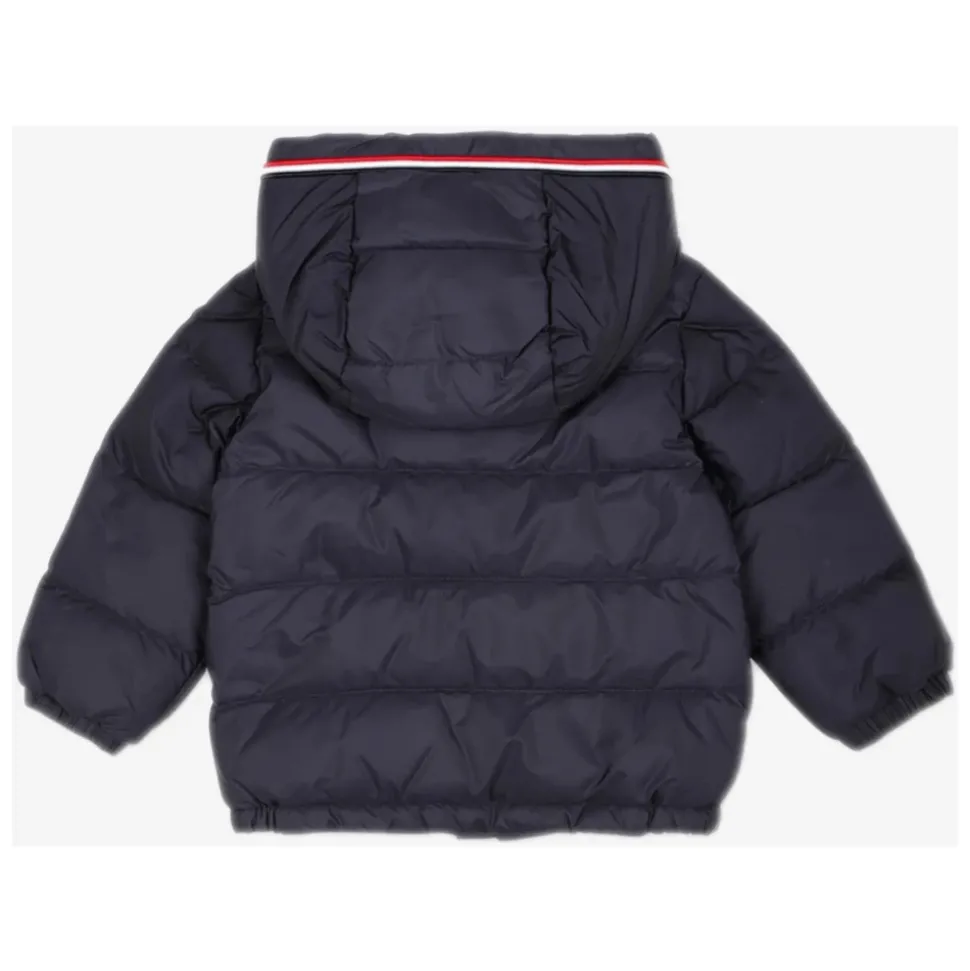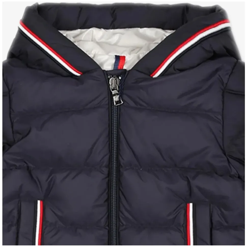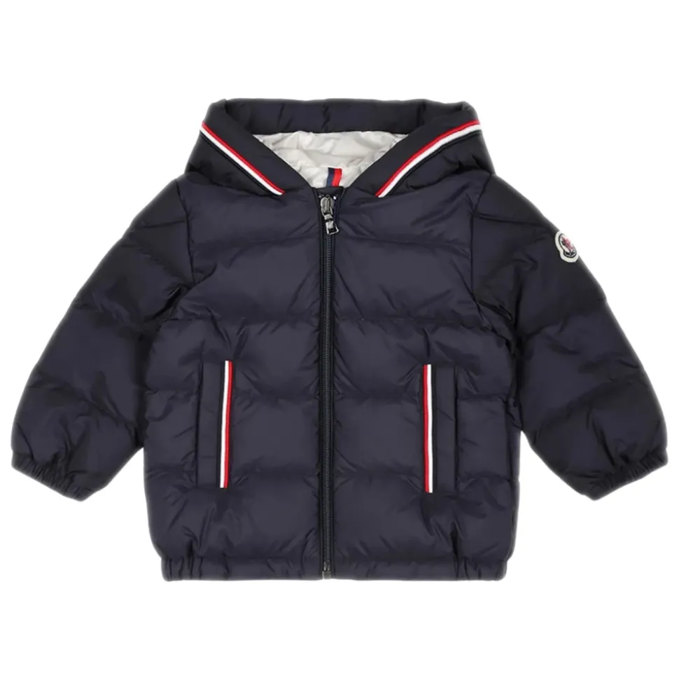 Kleed je kleine man in stijl met deze Moncler Merary pufferjas. Gemaakt van hoogwaardige materialen, is deze blauwe regenkleding zowel praktisch als modieus. Met een ritssluiting, opgestikte zakken en elastische manchetten en zoom is deze gewatteerde jas perfect voor de winter. Het iconische vilten logopatch en de driekleurige details voegen een vleugje verfijning toe. Buitenkant: 100% Polyamide, Voering: 100% Polyester, Vulling: 90% Dons, 10% Veer.
