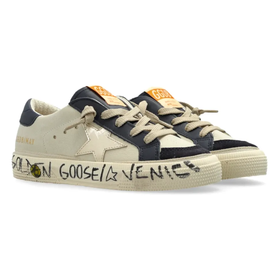 De Golden Goose May With Double Toe Sneakers combineren het Italiaanse design erfgoed van het merk met een versterkte dubbele neus constructie en kenmerkende details. Het bovenwerk van nubuckleer, de gestikte ster en de dikkere rubberen zool zorgen voor een verfijnde look met dagelijks draagcomfort. Belangrijkste kenmerken: Beige | Crème | Nubuckleer | rubberen zool | Verbeterde duurzaamheid door versterkte delen | Comfortgerichte constructie | Vetersluiting | Versterkte hiel en teen | Dikkere rubberen zool voor extra steun | Gestikte ster applicatie | Gesegmenteerd bovenwerk | Contrasterend GGDB-logo op het tonglabel | Marineblauwe accenten | Dubbele neus versteviging | Afmetingen en pasvorm: Zoolhoogte: 2 cm | Zoolhoogte op het hoogste punt: 2,5 cm | Samenstelling en verzorging: Buitenkant: 100% nubuckleer | Voering: 100% kalfsleer; 100% kalfs suède | Zool: 100% rubber