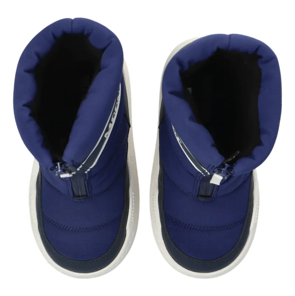 De Moon Boot MB JR Park Zip High WP Snow Boots combineren waterdichte bescherming met een gemakkelijke centrale rits voor snel aan- en uittrekken. Ze zijn ontworpen voor de winter en combineren geïsoleerd comfort met een , antislip zool. Belangrijkste kenmerken: Blauw | Marineblauw | Polyamide | Waterdichte afwerking | Geïsoleerde voering voor thermisch comfort | , antislip thermoplastisch rubber loopvlak | Centrale ritssluiting voor gemakkelijk aan- en uittrekken | Instapmodel | EVA-middenzool voor demping | Hoge schacht | Afgeronde neus | Contrasterende witte rubberen zool | Logoband rond de bovenkant van de schacht | Discreet logo-label aan de onderkant van de schacht | Afmetingen en pasvorm: We raden aan een maat groter te nemen. | Samenstelling en onderhoud: Bovenwerk: 65% polyamide, 35% polyurethaan | Voering: 100% polyester | Zool: 85% EVA, 15% thermoplastisch rubber | Verwijder vuil met een zachte, droge borstel. Veeg vlekken weg met een zachte, vochtige doek en een mild reinigingsmiddel. Reinig de middenzool/buitenzool met een zachte borstel, een mild reinigingsmiddel en water. Laat drogen op kamertemperatuur en bewaar in een beschermende tas.