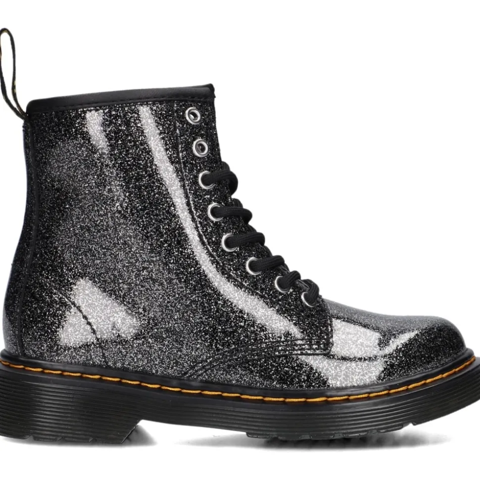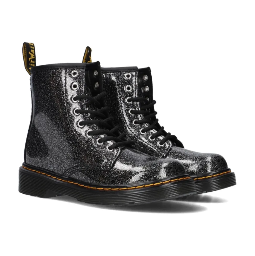 Laat je betoveren door de 1460 T van DR MARTENS, speciaal voor stoere meisjes. Deze veterboots met ronde neus zijn perfect voor een herfstwandeling in het park of een winterse speurtocht naar schatten. De buitenkant is gemaakt van vegan materiaal met een sprankelende glitterprint, terwijl de binnenkant je voeten warm houdt met textiel en leatherlook. De rubberen zool zorgt voor grip tijdens al je avonturen. Combineer deze zwarte boots met een warme, wollen jurk of een stoere jeans en een dikke trui. Met de normale zool en vetersluiting stap je stijlvol en comfortabel de wereld in.