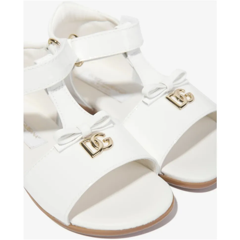 Deze Dolce & Gabbana sandalen voor baby meisjes uit de The Happy Garden collectie zijn gemaakt van prachtig lakleer met strikken en metalen DG-logo’s. Gemaakt in Italië met verstelbare klittenbandriemen, Nappa leren inlegzolen en een versterkte hiel. Antislip rubberen zool. Printplaatsing kan variëren. 100% kalfsleer.