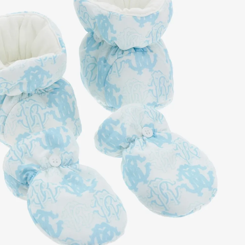 Kleed je kleintje in stijl met deze Roberto Cavalli RC Monogram-Borduurwerk Babygrow Set in lichtblauw. Gemaakt in Italië van 100% PL-stof, is deze unisex set een must-have voor modieuze kinderen.