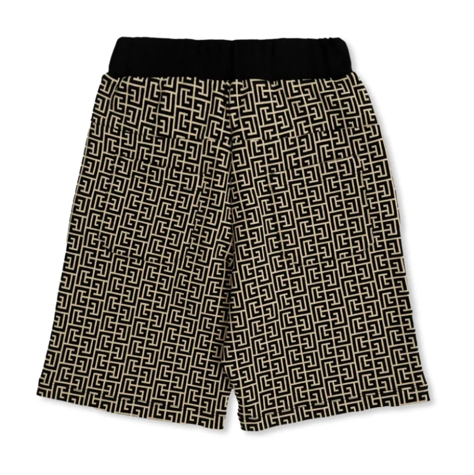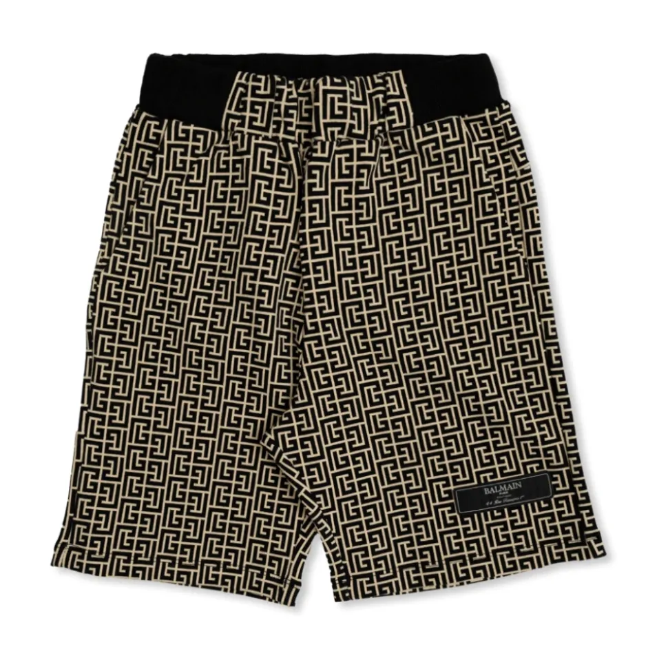 Wij presenteren de MONOGRAM SHORTS uit de BALMAIN KIDS collectie, die elegantie en comfort harmonieus combineren. Gemaakt van de hoogste kwaliteit katoen met een vleugje elastaan, bieden ze niet alleen stijl, maar ook comfort. Het subtiele zwart-beige geometrische patroon, dat doet denken aan een monogram, benadrukt de verfijnde aard van dit product. De zwarte, elastische tailleband zorgt voor een perfecte pasvorm, terwijl vier steekzakken praktisch zijn. Het embleem met