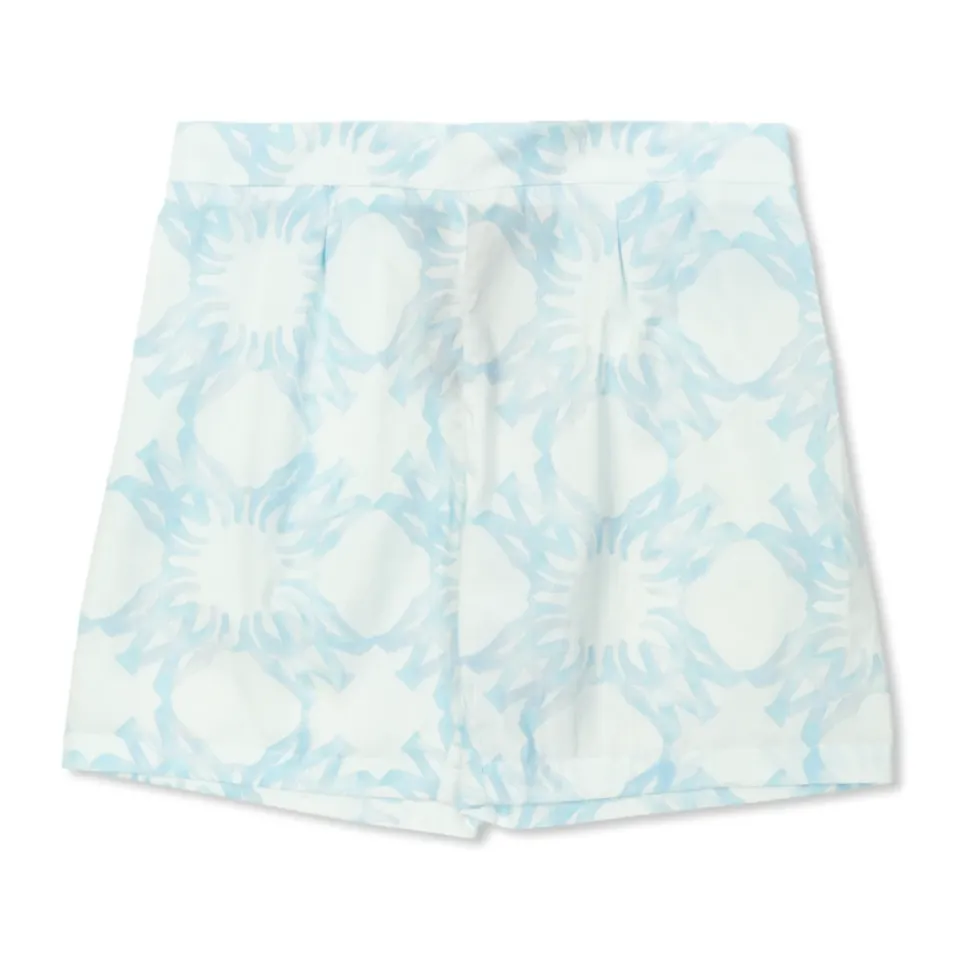 MONOGRAM SHORTS van AMIRI KIDS zijn een verfijnde keuze voor jonge mode-enthousiastelingen die houden van exquise eenvoud en verfijnde utilitaire stijl. Een subtiel lichtblauw monogrampatroon, dat doet denken aan vervaagde aquarellen, siert de hele stof en trekt de aandacht met zijn artistieke samenstelling. De klassieke, licht uitlopende snit die boven de knie valt, samen met de elastische tailleband die zowel aan de voorkant als aan de achterkant zichtbaar is, zorgt voor uitstekende bewegingsvrijheid. Het materiaal is luchtig, zacht en comfortabel, gemaakt van hoogwaardig katoen om dagelijks draagcomfort te garanderen. De ontwerpers hebben een evenwichtige harmonie bereikt tussen functionaliteit en moderne esthetiek, die de avant-gardistische geest van het merk weerspiegelt. WAAROM DIT PRODUCT KIEZEN? * Uniek, artistiek monogrampatroon * De prestige van de naam van een gerenommeerde ontwerper * Hoogwaardige, ademende katoenen stof * Functionele, comfortabele pasvorm voor dagelijks gebruik * Perfecte afwerking en oog voor detail