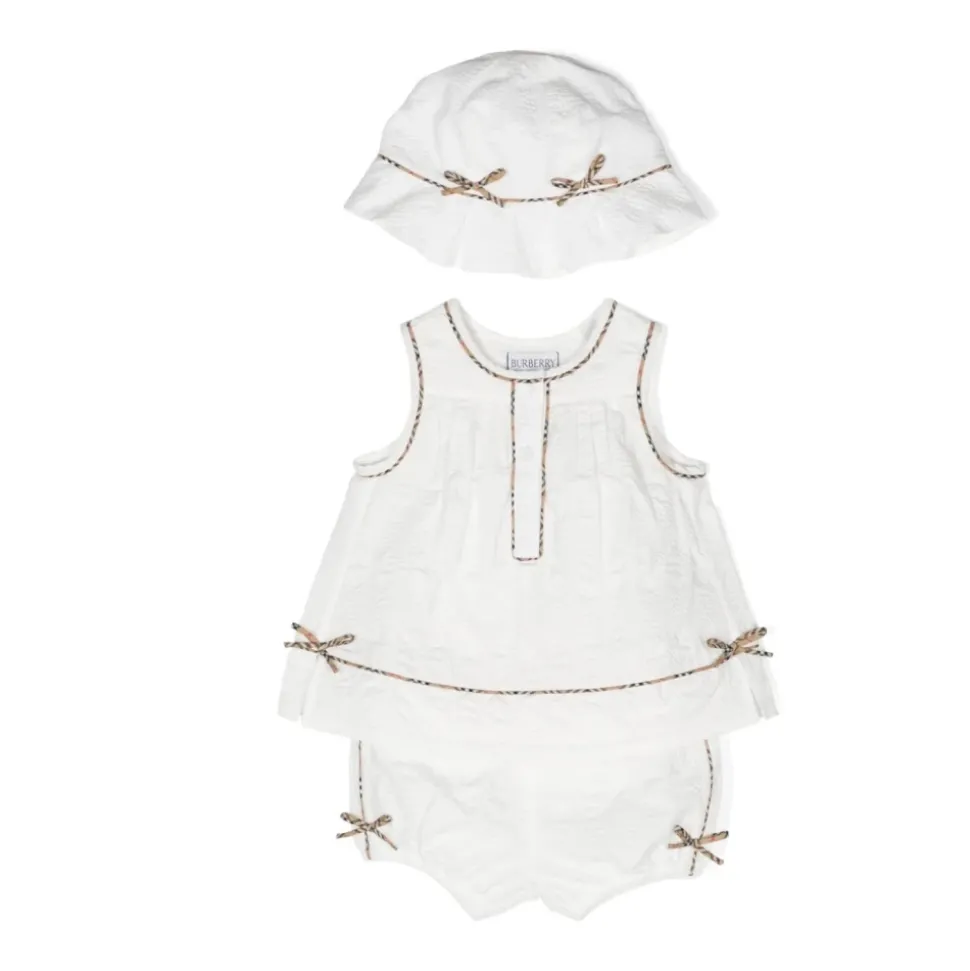 Verrijk je garderobe met de luxueuze N7 Carianne Set van Burberry, vervaardigd uit 100% katoen voor een vleugje verfijning. Belangrijkste kenmerken: Wit | 100% Katoen | Samenstelling en onderhoud: 100% Katoen | Machinewas koud, droogtrommel laag.