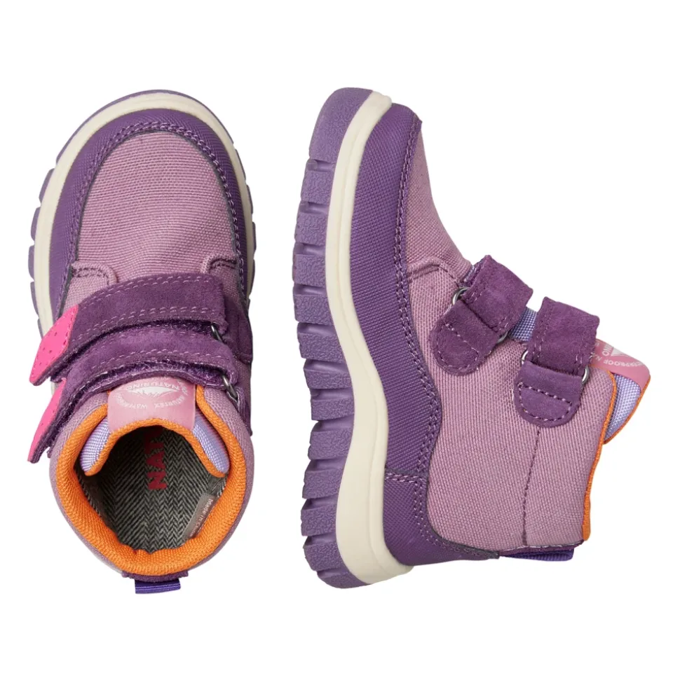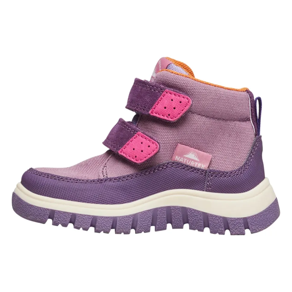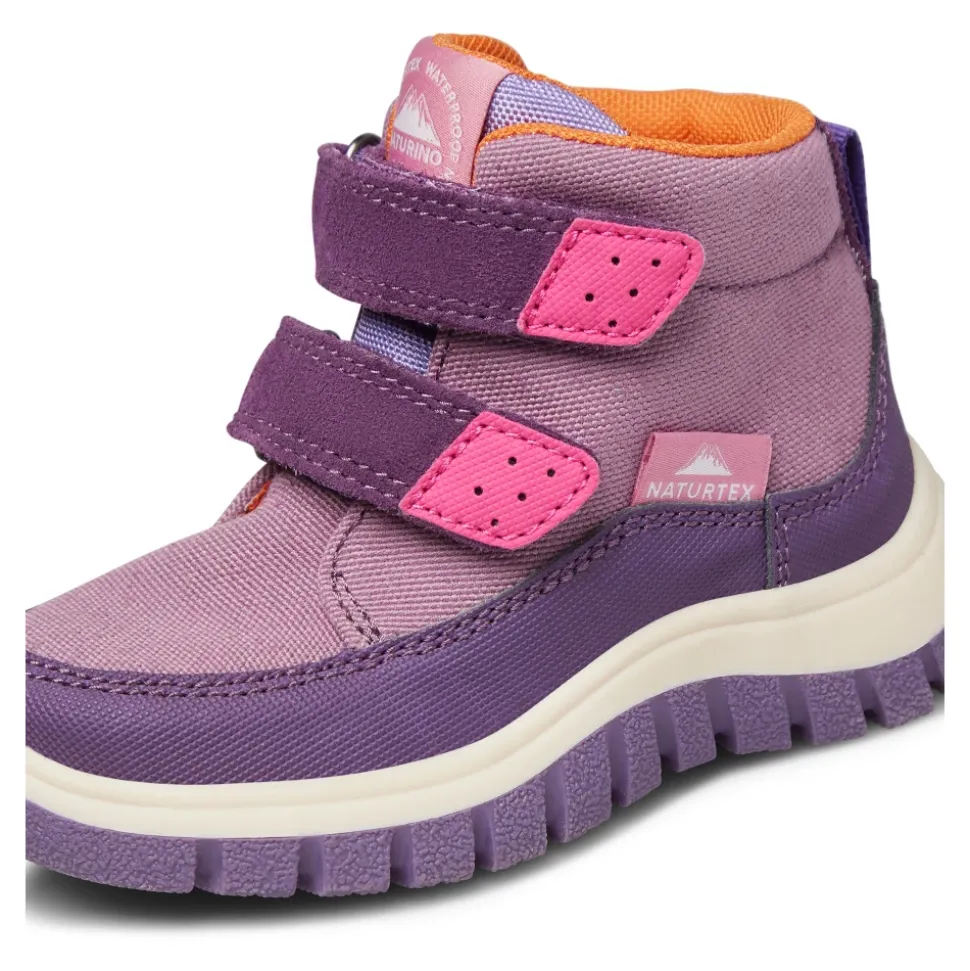 Naturino NEW PILE VL WP. laarzen combineren suède en technische stof met een dubbele klittenbandsluiting voor gemakkelijk aan- en uittrekken. Hun silhouet dat over de enkel valt en de antislip rubberen zool maken ze zeer geschikt voor koudere, natte omstandigheden. Belangrijkste kenmerken: Paars | Violet | Suède en technische stof | Antislip rubberen zool | Dubbele klittenbandsluiting | Gemakkelijke en comfortabele pasvorm | Silhouet dat over de enkel valt | Contrasterende stiksels | Contrasterende voering | Bovenwerk van suède en technische stof | Samenstelling & verzorging: Suède | Technische stof | Leer | Textiel
