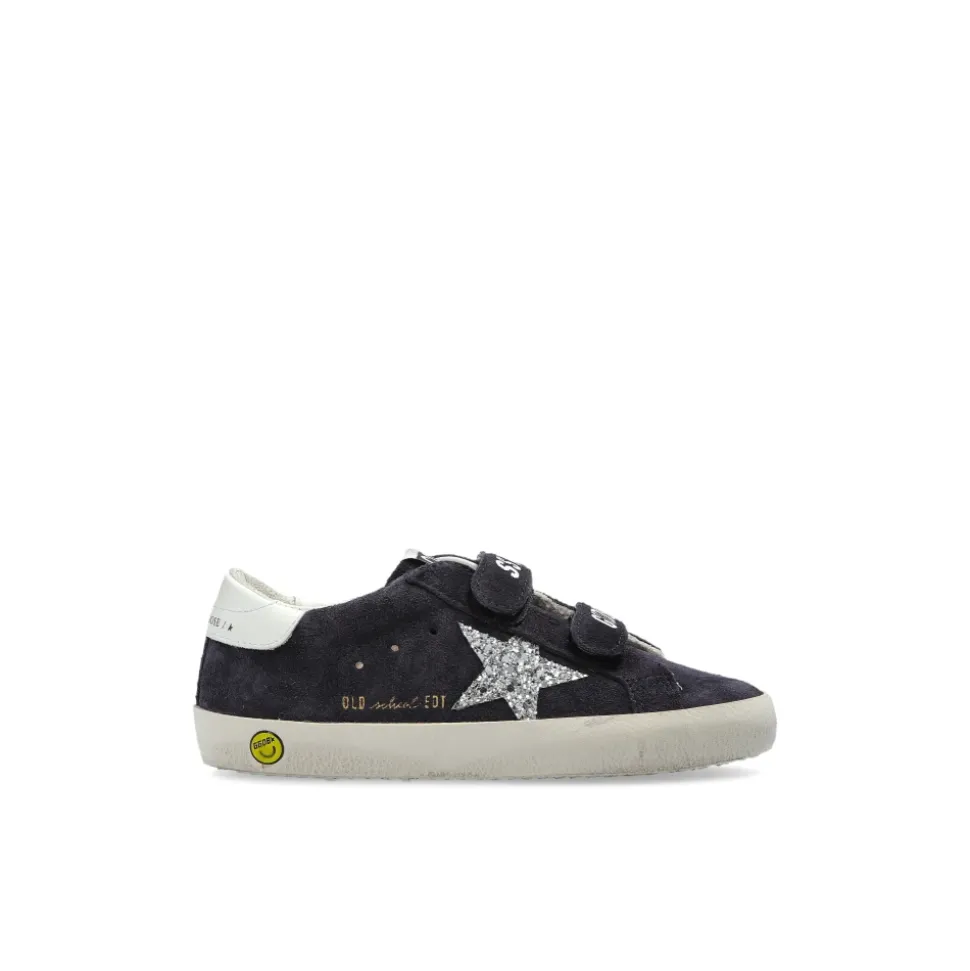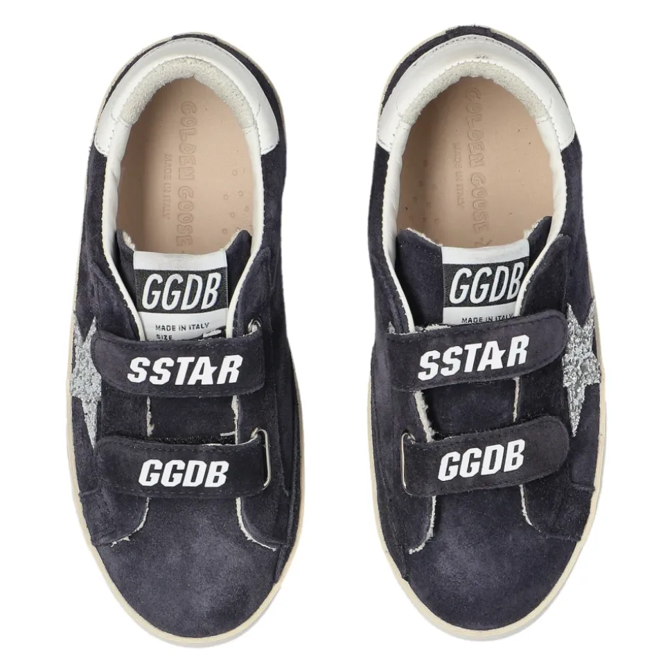 De Golden Goose Old School Sneakers combineren marineblauw suède met een zilveren ster en contrasterende witte lederen details voor een verfijnde, alledaagse sneaker. De laag uitgesneden silhouet en twee klittenbandsluitingen maken ze een praktische keuze om gemakkelijk aan en uit te trekken. Belangrijkste kenmerken: Blauw | Marineblauw | Suède leer | Comfortabele platte zool | constructie | Twee brede klittenbandsluitingen voor gemakkelijke sluiting | Platte zool voor stabiliteit | Laag uitgesneden silhouet | Afgeronde neus | Zilveren glanzende sterdetail | Contrasterende witte lederen hiel en tong | Vintage afwerking | “GOLDEN GOOSE” in reliëf op contrasterende band | Samenstelling & verzorging: Suède leer (bovenkant) | Textiel (voering) | Rubber (zool)
