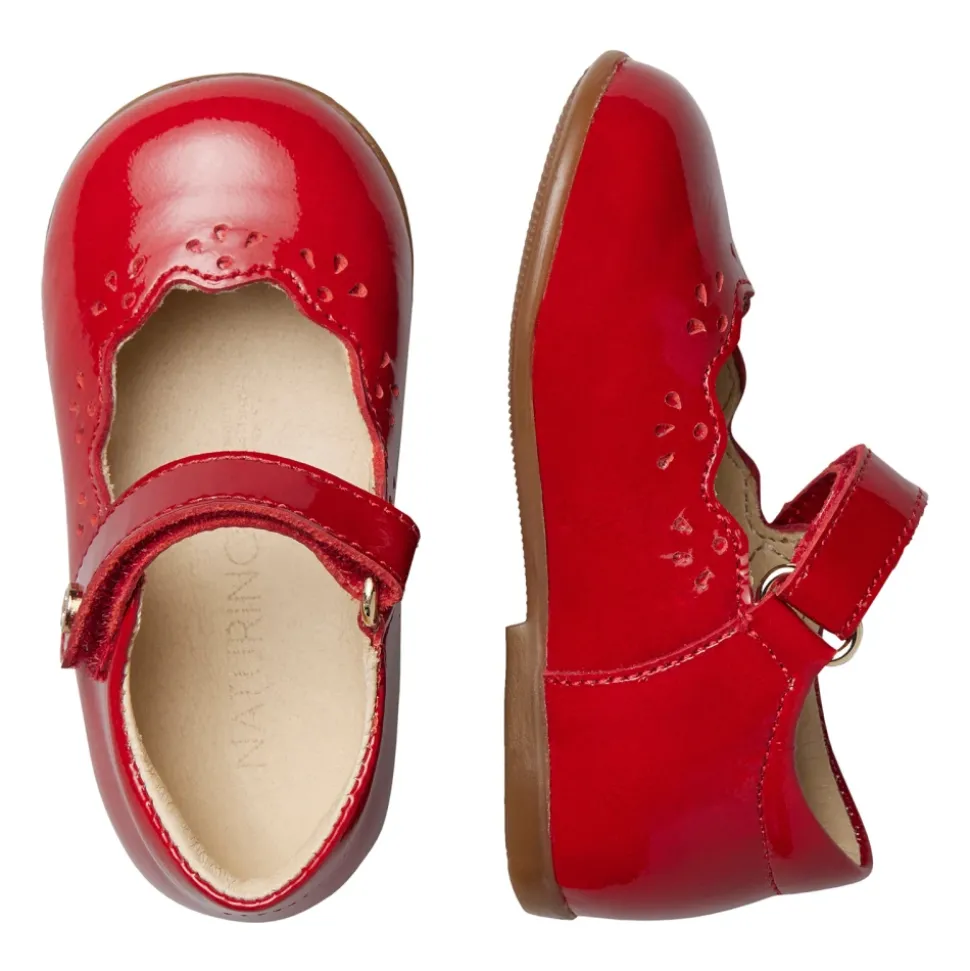 De Naturino OLYA ballerina’s combineren een glanzend bovenwerk van lakleer met een veilige wreefband voor zowel geklede looks als dagelijks gebruik. De stijl valt op door de gevormde rand en geperforeerde details, plus een leren voering en rubberen zool voor comfortabele stappen. Belangrijkste kenmerken: Rood | Lakleer | Antislip rubberen zool | Wreefband | Leren voering | Rubberen buitenzool | Gevormde/geschulpte rand | Geperforeerde details op het bovenwerk | Samenstelling & verzorging: Buitenkant: Lakleer | Voering: Leer | Buitenzool: Rubber