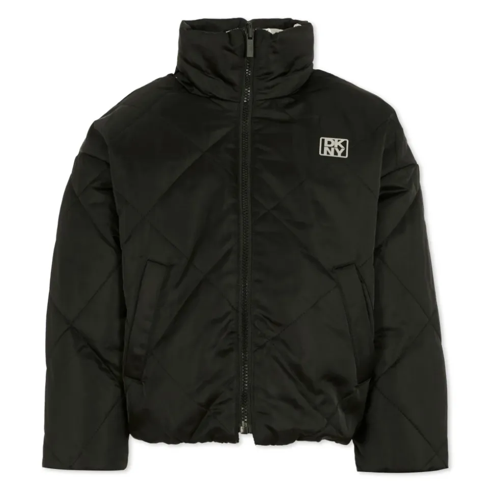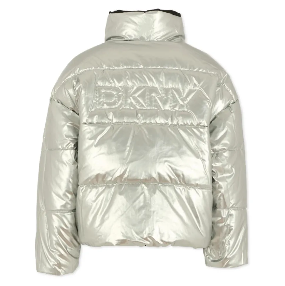 Blijf warm en stijlvol met deze omkeerbare zwarte en zilveren DKNY winterjas voor kinderen. Voorzien van een verborgen capuchon, ritssluiting aan de voorkant en zijzakken. Deze zware gewatteerde en doorgestikte jas is perfect voor koud weer. Versierd met een logo op de borst aan de ene kant en een geborduurd logo op de rug aan de andere kant. Gemaakt van 100% polyamide. Machinewasbaar op 30°C.