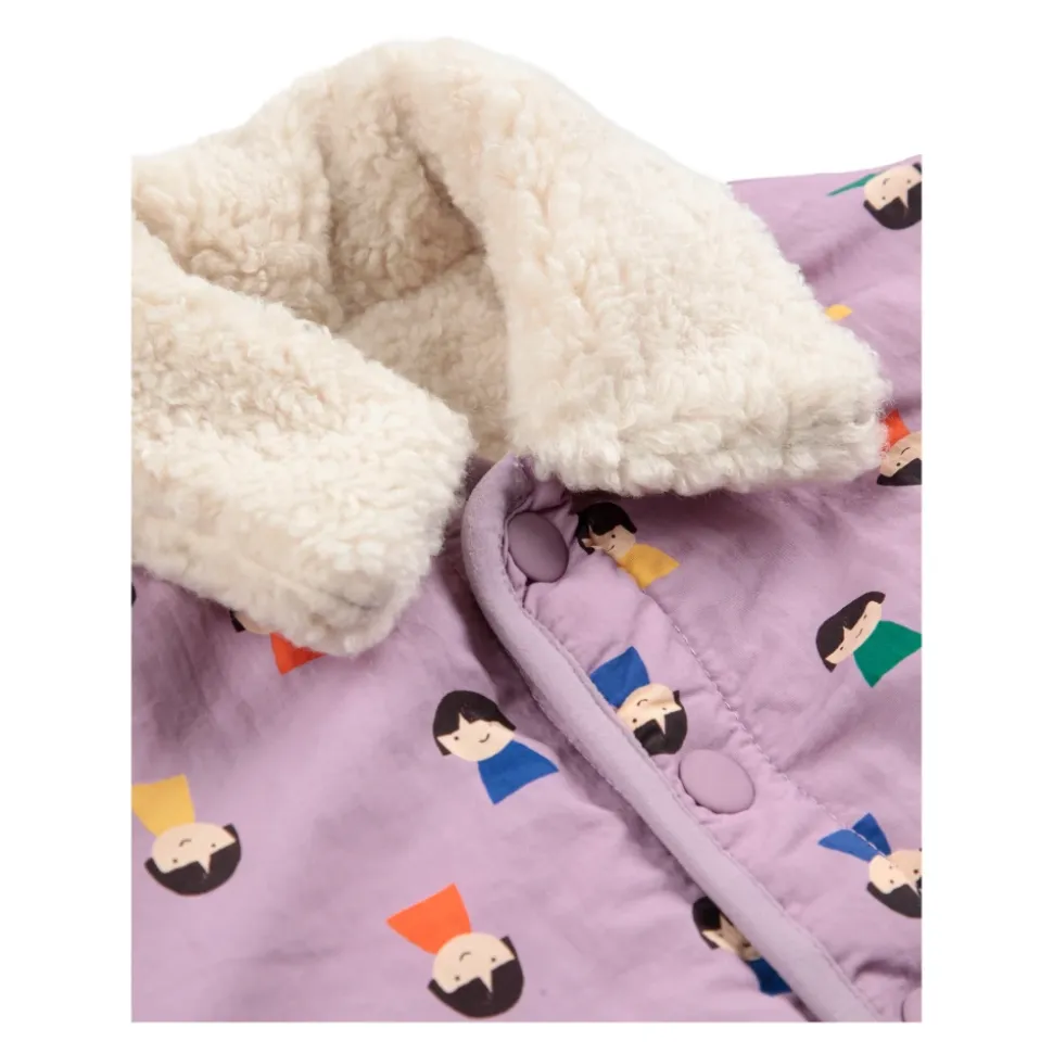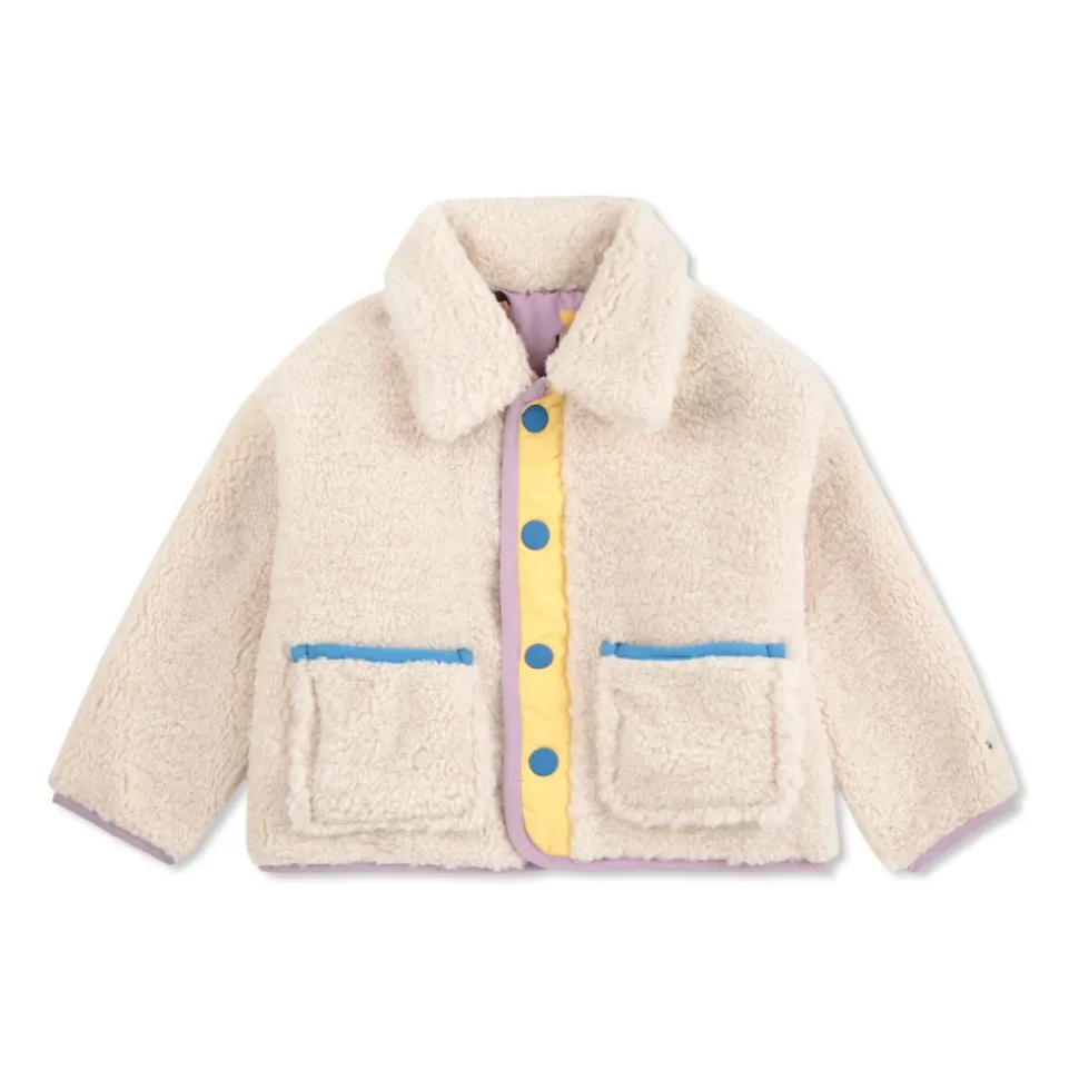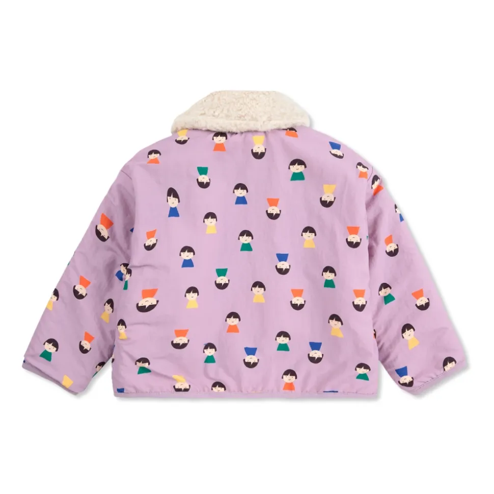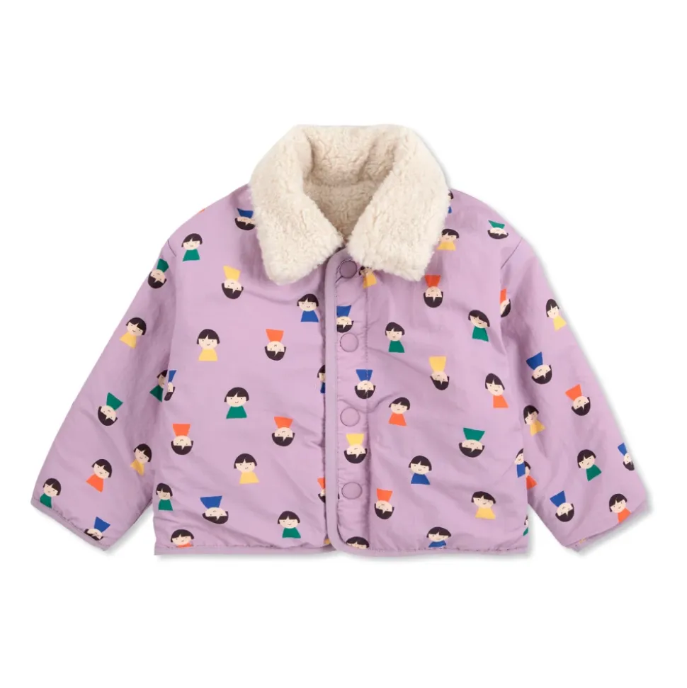 REVERSIBLE JAS gecreëerd door het gerenommeerde merk Bobo Choses is een uniek aanbod voor de jongste mode-enthousiastelingen, waarbij artistiek talent wordt gecombineerd met een focus op comfort. De basiversie, in een dieppaarse tint, betovert met een SIGNATUUR, KINDERLIJK PRINT met schattige gezichten in kleurrijke outfits, wat een vrolijke lichtheid toevoegt aan het geheel. De omkeerbare zijde onthult gezellig, crèmekleurig “teddy fleece,” dat omhult in zachtheid en uitstekende thermische isolatie biedt. Het praktische ontwerp, met DUBBELZIJDIGE SLUITING MET KLEURRIJKE DRUKKNOPEN, wijde mouwen en een korte, relaxte pasvorm, zorgt voor bewegingsvrijheid en gemak bij het aankleden. De kraag afgezet met zachte sherpa en functionele zakken maken de details compleet die het uitzonderlijke karakter van dit product benadrukken. De jas is volledig gemaakt van POLYESTER, wat een toewijding aan milieubewustzijn aantoont. WAAROM DIT PRODUCT KIEZEN? * Uniek, origineel patroon dat de verbeelding van kinderen stimuleert * Praktisch vanwege het omkeerbare ontwerp * Comfortabele en warme sherpa-afwerking * Sluitingen en details op maat gemaakt voor de behoeften van kinderen * materiaal gemaakt van vezels * Product aanbevolen door het prestigieuze merk Bobo Choses