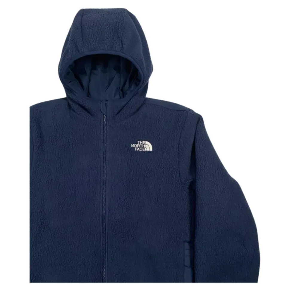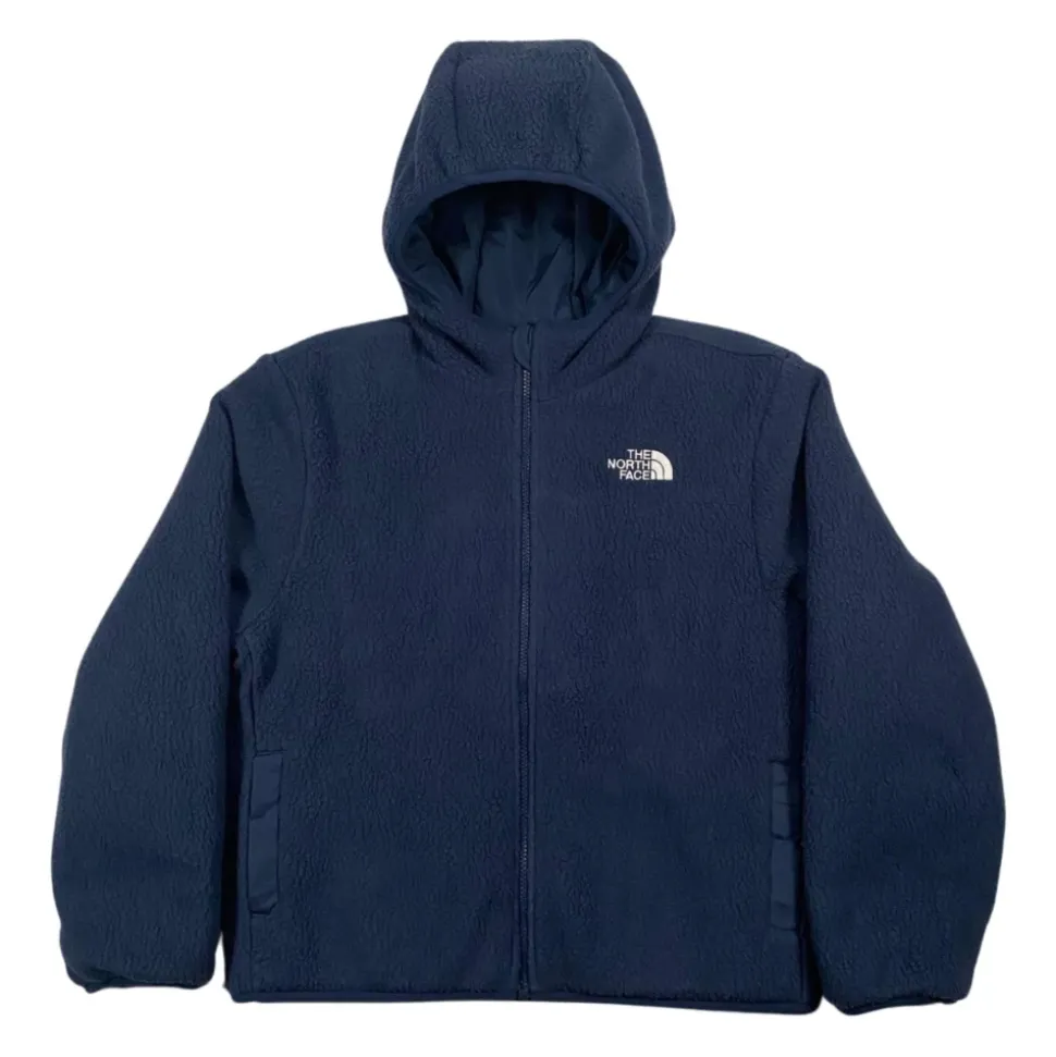 The North Face Kids omkeerbare jas met een gladde turquoise/blauwe nylon kant, gewatteerd, vaste capuchon, meerdere zakken; zachte blauwe sherpa stof kant, geborduurd logo op de borst. Samenstelling: 100% polyester.