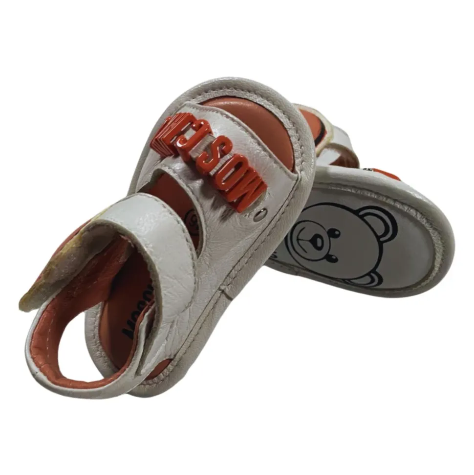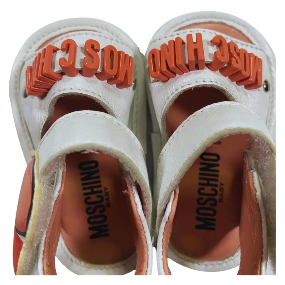 Moschino Open-Toe Leren Sandalen combineren een gladde leren constructie met speelse hart- en bijenapplicaties en een gemakkelijke klittenbandsluiting voor snel aan- en uittrekken. Belangrijkste kenmerken: Multicolor | Wit | Roze | Leer | Klittenbandsluiting | Gladde leren binnenkant | Open teen | Uitgesneden ontwerp | Hartpatch aan één kant | Bijenpatch aan de andere kant | Contrasterend roze metalen logo patch aan de voorkant | Samenstelling & verzorging: Leer