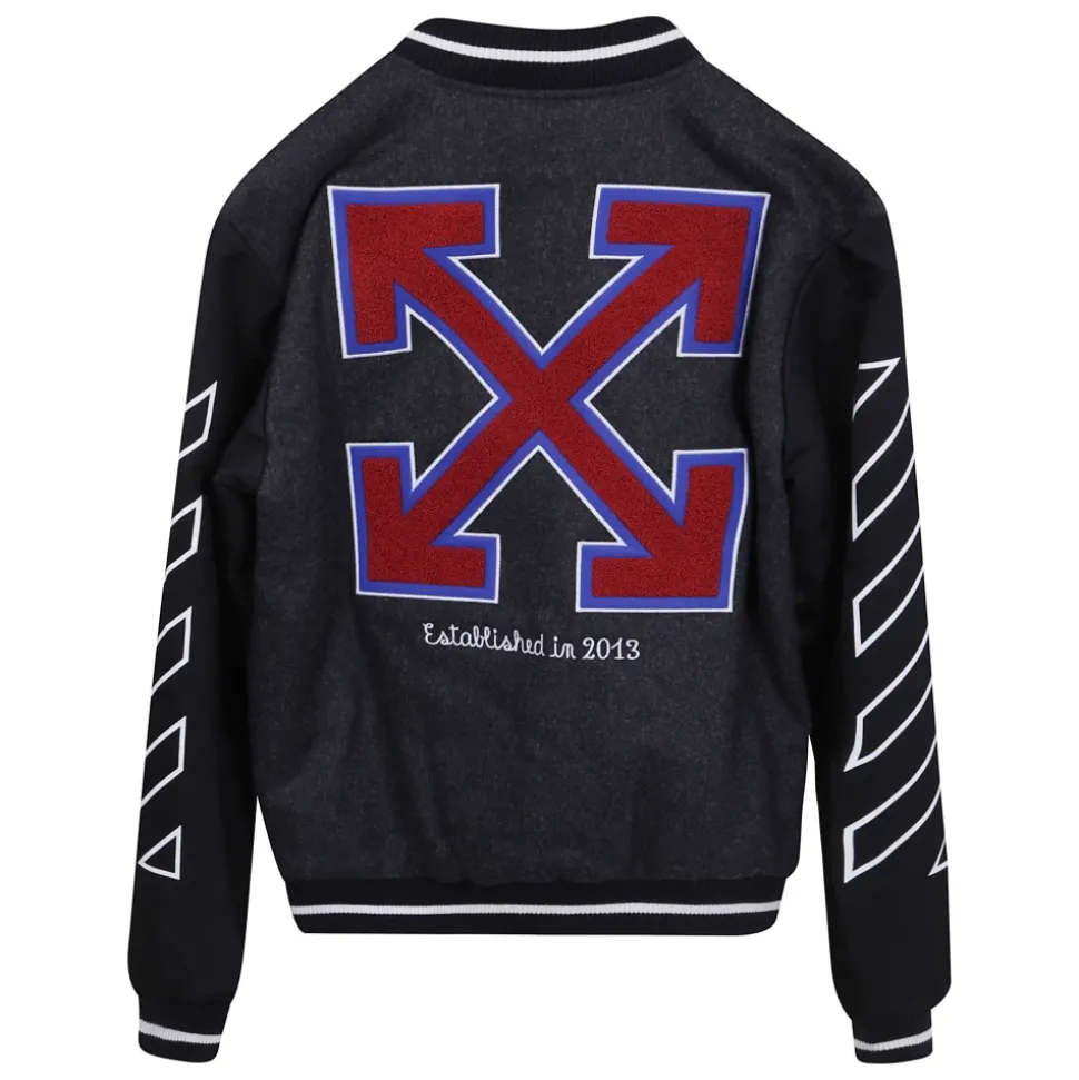 De OW Terry Patch Varsity van Off White is een lichtgewicht varsity-jas met opvallende patchdetails en een badstoftextuur, ideaal om in laagjes te dragen bij wisselvallig weer. Belangrijkste kenmerken: Grijs | Donkergrijs | Gebroken wit | Badstof | Patchdetails | Varsity-jas silhouet | Badstoftextuur