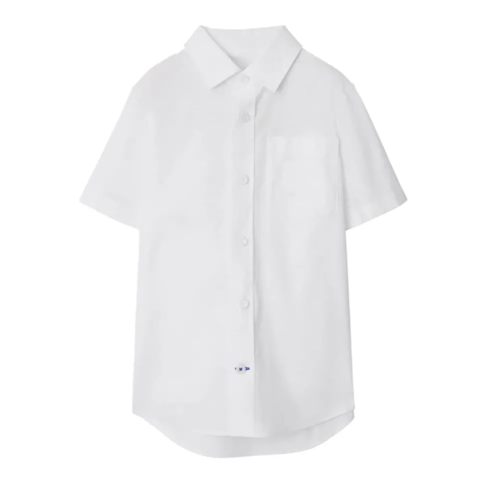 Het Owen Shirt met Korte Mouwen van Burberry is een veelzijdige toevoeging aan elke garderobe, en biedt een klassieke look met modern comfort. Perfect voor casual uitjes of semi-formele evenementen. Belangrijkste kenmerken: Wit | Katoen | Ademende stof | Knoopsluiting aan de voorkant | Korte mouwen | Klassieke kraag | Afmetingen en pasvorm: Regular fit | Samenstelling en onderhoud: 100% Katoen | Machinewas koud, droogtrommel laag.
