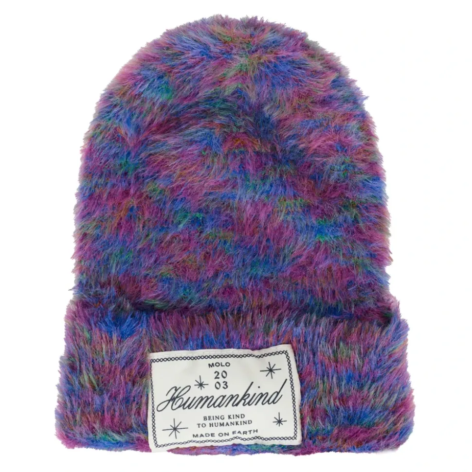 Voeg een vleugje kleur toe aan de outfit van je kleintje met deze paarse omgeslagen muts van Molo. Voorzien van een logopatch aan de voorkant, gemaakt van 100% polyester en machinewasbaar op 30°C.