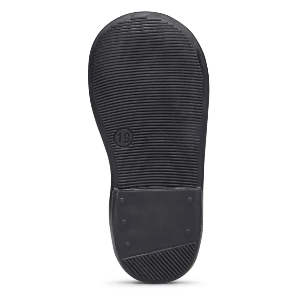 The great junior footwear classic, in a contemporary and fresh version. This patent leather ballet flat, embellished with a bow on the neckline and adjustable strap, is perfect for special occasions, strolling around town or going out with mum. Leather inner lining and non-slip rubber sole.