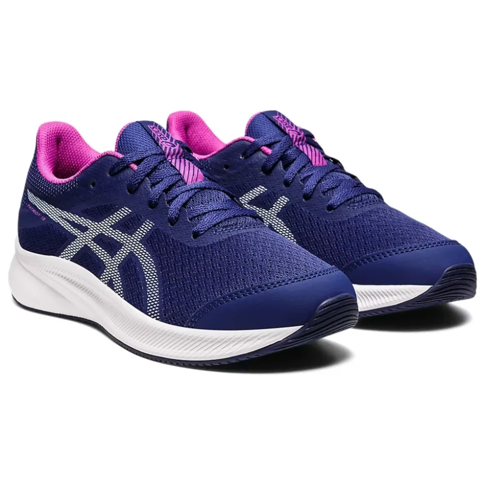 De ASICS Patriot 13 GS sneakers combineren een ademend bovenwerk van mesh met responsieve EVA-demping voor lichtgewicht comfort tijdens het hardlopen en dagelijkse activiteiten. Belangrijkste kenmerken: Dive blue | Soft sky | Mesh | EVA-middenzool demping | Ademend bovenwerk van mesh | Rubberen buitenzool voor grip | Vetersluiting | Textielvoering | Laag model | Textiel bovenwerk met synthetische overlays | Verstevigde hielkap | Samenstelling & onderhoud: Mesh (bovenwerk) | EVA (middenzool) | Rubber (buitenzool) | Textiel (voering) | Synthetische overlays