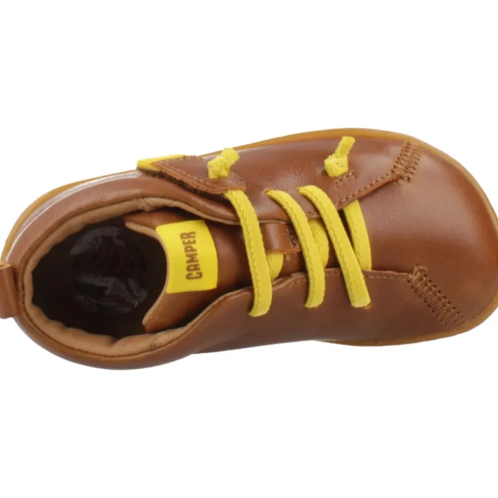 Camper Peu enkellaarsjes combineren een flexibele, gestikte leren constructie met een gemakkelijke klittenbandsluiting voor betrouwbare dagelijkse slijtage. De stijl richt zich op natuurlijke beweging en comfort met een gedempte, uitneembare EVA-binnenzool. Belangrijkste kenmerken: Bruin | Kalfsleer | Flexibele constructie voor natuurlijke beweging | Rubberen buitenzool met sterke grip | Klittenbandsluiting | Elastische veters voor snelle instap | Uitneembare EVA-binnenzool | Silhouet op enkelhoogte | 360-graden gestikte (Strobel) constructie | Elastische zigzagveters | Samenstelling & onderhoud: Bovenkant: Kalfsleer | Voering: 42% polyester, 58% varkensleer | Binnenzool: EVA (uitneembaar) | Buitenzool: Rubber (20%) | Reinig met een vochtige doek. Gebruik indien nodig een leerreiniger/-conditioner. Niet in de wasmachine.