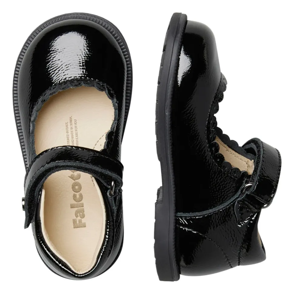 De Falcotto Plinpi 2 Ballerina combineert een glanzende lakleren afwerking met een veilige band voor gemakkelijk aan- en uittrekken. Ontworpen voor speciale gelegenheden, combineert het leercomfort met een rubberen zool voor stabiel dagelijks gebruik. Belangrijkste kenmerken: Zwart | Lakleer | Rubberen zool voor stabiliteit | Bandsluiting voor gemakkelijk aan- en uittrekken | Leren voering en leren binnenzool voor comfort | Ballerina silhouet | Glanzende lakafwerking | Samenstelling & verzorging: Lakleer | Leren voering | Leren binnenzool | Rubberen zool