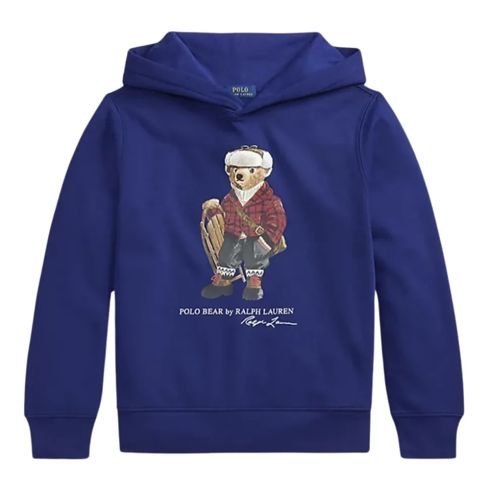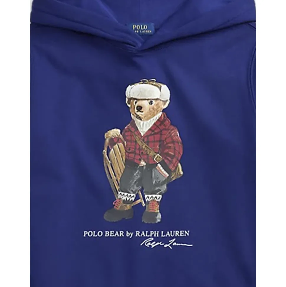 Upgrade de stijl van je kleine man met deze Polo Ralph Lauren sweatshirt. Gemaakt van een comfortabele katoenmix, deze navy sweatshirt heeft een verstelbare capuchon met trekkoord, lange mouwen en een charmante Polo beerprint op de voorkant. Perfect voor dagelijks gebruik, afgewerkt met elastische randen en een rechte zoom. Gemaakt in Turkije. Samenstelling: 66% katoen, 34% polyester. Verkrijgbaar in maten S (6/7 jaar), M (8/9 jaar), L (10/12 jaar) en XL (13/14 jaar).