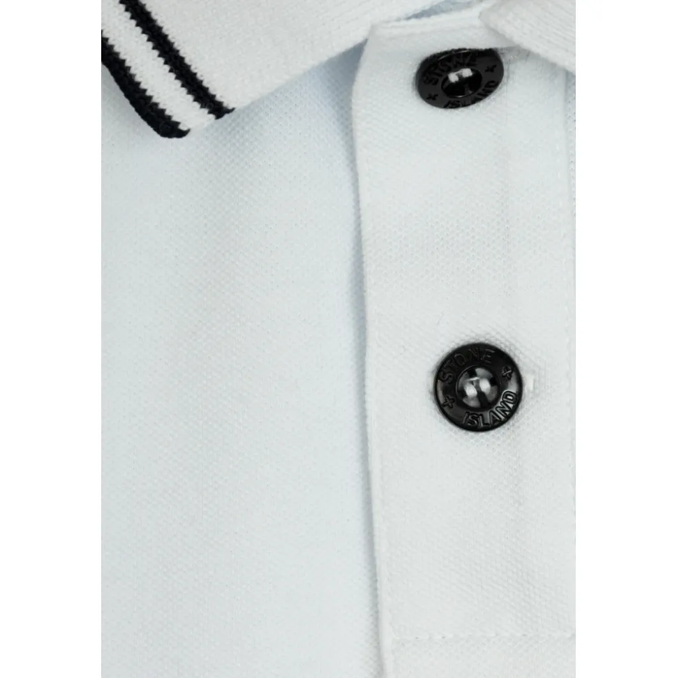 Ontdek de elegantie en functionaliteit van de Polo met Logo van Stone Island. Deze klassieke witte polo is gemaakt van zacht, ademend katoen met een vleugje elastaan, wat zorgt voor comfort en stijl. Belangrijkste kenmerken: Wit | Katoen | Elastaan | Ademende stof | Zwarte knopen met merk gravure | Logo patch op de linkerborst | Contrasterende zwarte strepen op kraag en mouwen | Afmetingen en pasvorm: Regular fit | Samenstelling en onderhoud: 95% Katoen | 5% Elastaan | Machinewas koud, droogtrommel laag