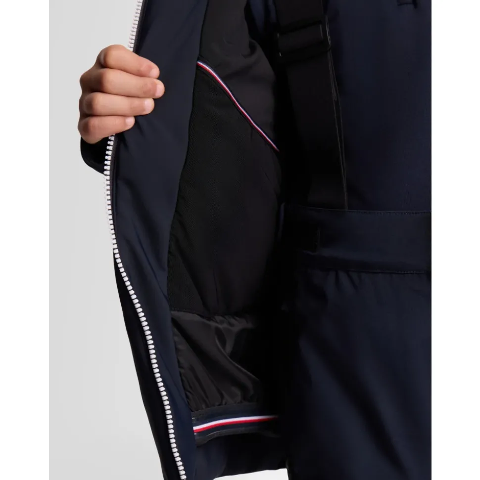 Het Power Jr ski-jack combineert bescherming en comfort dankzij de fleece-gevoerde softshell-stof. De voering zorgt voor warmte en lichtheid om de kou te trotseren. Praktisch, het heeft een vaste capuchon, manchetten met duimgaten, ritszakken en een geïntegreerde sneeuwvanger voor optimale bescherming op de pistes. Waterafstotende ritsen maken deze functionele en jas compleet.