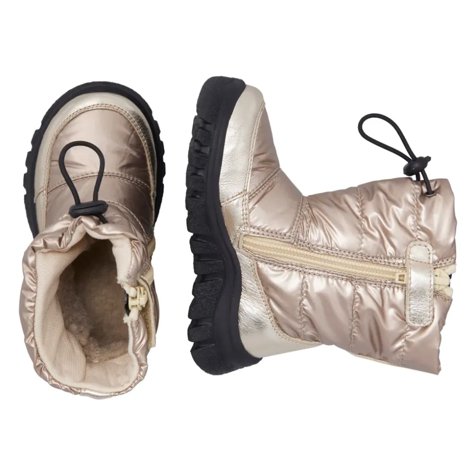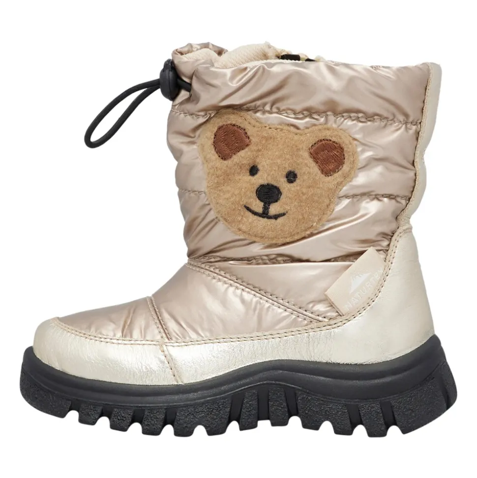 Falcotto POZNURR BEAR 2 WP is een gevoerde laars ontworpen voor koude, gladde omstandigheden, en combineert een bovenwerk van leer en technisch weefsel met een teddy patch aan de zijkant voor extra stijl. Het waterdichte bovenwerk en de antislipzool maken hem geschikt om buiten te spelen in nat of besneeuwd terrein. Belangrijkste kenmerken: Geel | Goud | Leer en technisch weefsel | Waterdicht bovenwerk | Antislipzool | Gevoerde isolatie | Binnenrits voor gemakkelijk aan- en uittrekken | Koordsluiting bij de kuit | Antislipzool met textuur | Teddy patch aan de zijkant | Gevoerd silhouet | Detail met koord bij de kuit | Samenstelling & verzorging: Leer | Technisch weefsel | Rubber (buitenzool) | Wol (binnenzool)