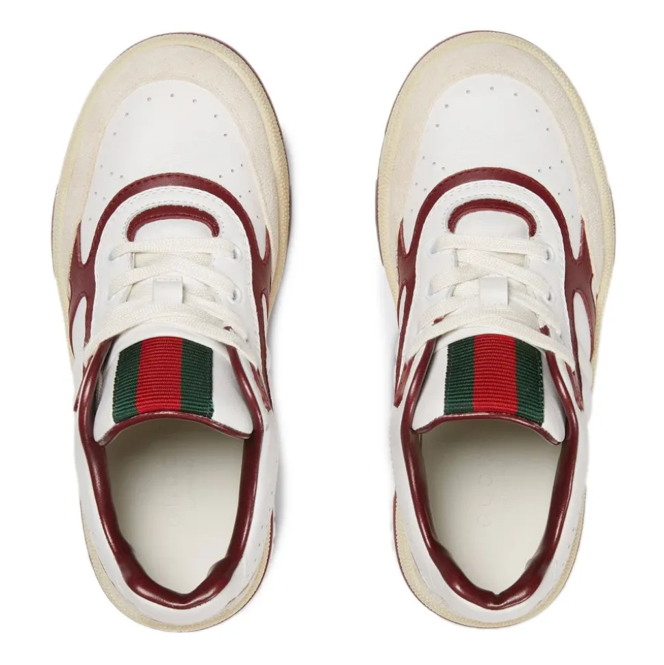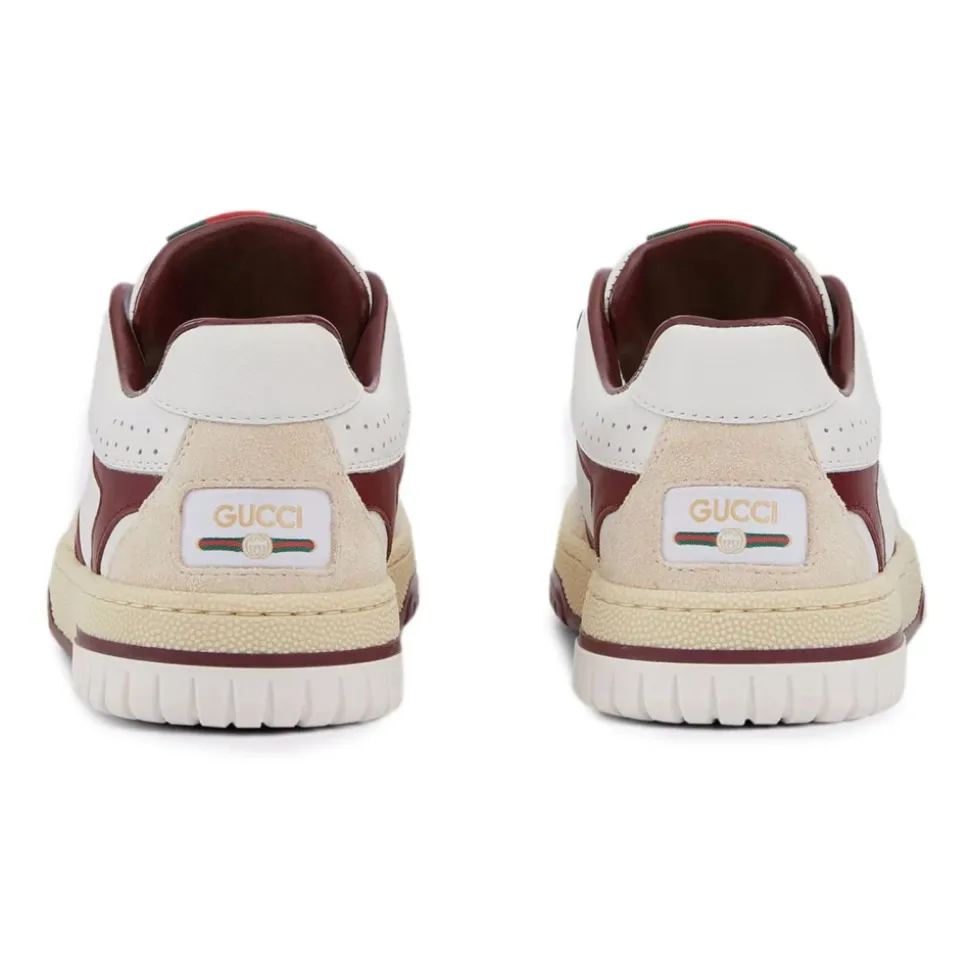 Verhoog je stijl met Gucci`s Re-Web Sneakers, vervaardigd uit luxueus ivoorkleurig leer en voorzien van iconische rode Gucci lederen details. Belangrijkste kenmerken: Wit | Ivoor | Leer | Vetersluiting | Rode Gucci lederen details | Ivoor suède details | Web tong | Interlocking G detail | Rubberen zool | Gucci lettering | Interlocking G web label | Samenstelling en onderhoud: 100% Leer