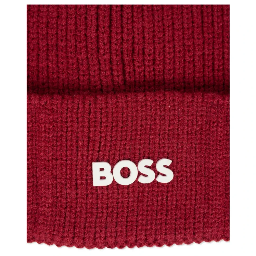 Voeg een vleugje kleur toe aan de outfit van je kleintje met deze rode gebreide muts van Hugo. Voorzien van een omslag en een wit rubberen logo aan de voorkant, is deze muts zowel stijlvol als comfortabel. Gemaakt van een mix van viscose, polyester, acryl en polyamide. Machinewasbaar op 30°C.