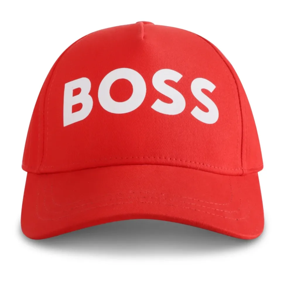 Voeg een vleugje kleur toe aan de outfit van je kleintje met deze rode katoenen pet van Hugo. Met klep, verstelbare band aan de achterkant en wit logo aan de voorkant is deze pet zowel stijlvol als praktisch. Gemaakt van 100% katoen, eenvoudig te onderhouden met machinewas op 30°C.