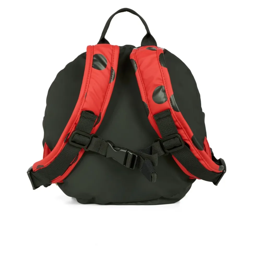 Maak je kleintje klaar voor school met deze waterdichte rode rugzak in de vorm van een lieveheersbeestje van Konges Sløjd. Voorzien van een handvat, ritssluiting, verstelbare gewatteerde schouderbanden en een kliksluiting aan de achterkant, is deze rugzak zowel praktisch als stijlvol. Versierd met zwarte polka dots, heeft het de afmetingen 22,5 cm x 24 cm x 6 cm en is gemaakt van 100% polyester. Machinewasbaar op 30°C.