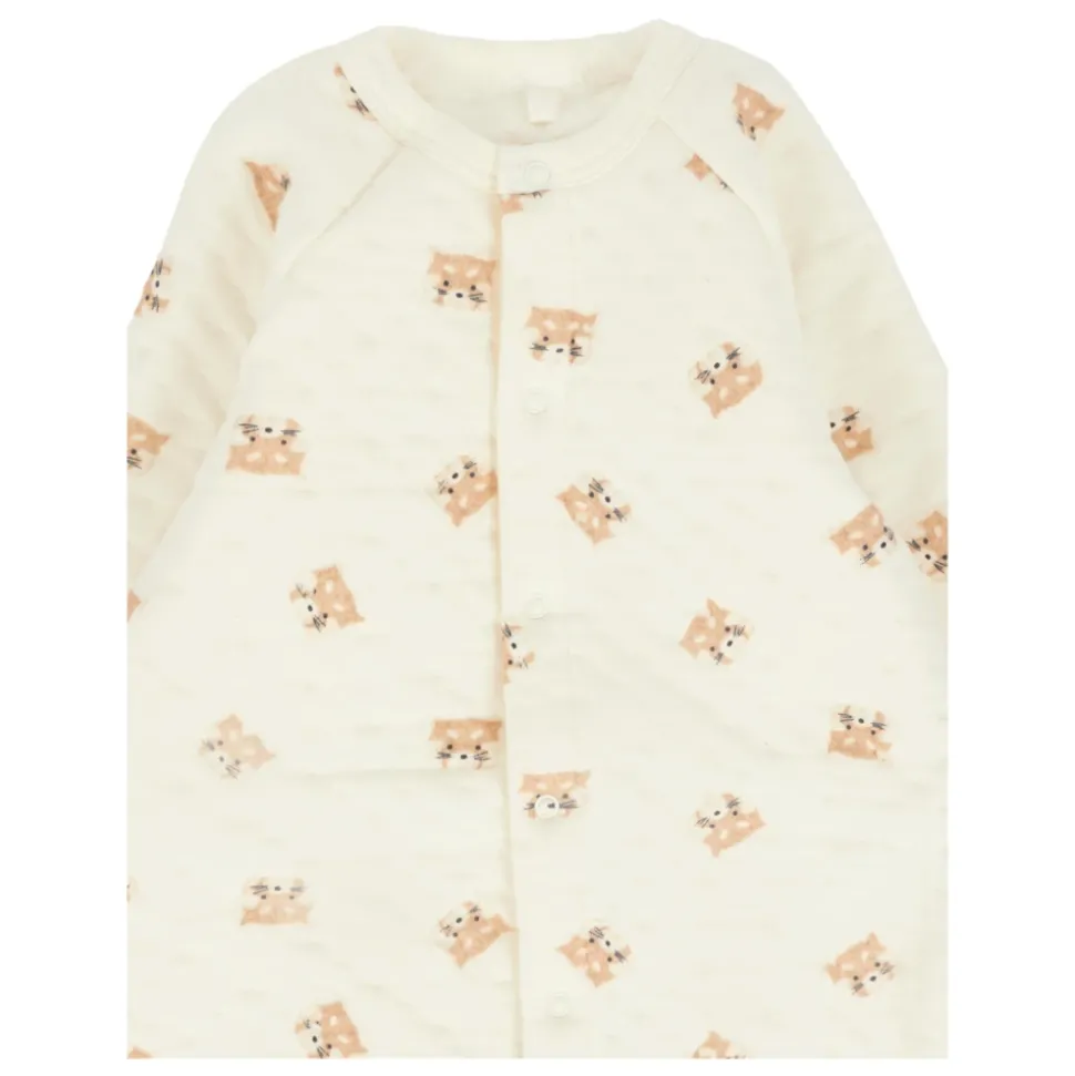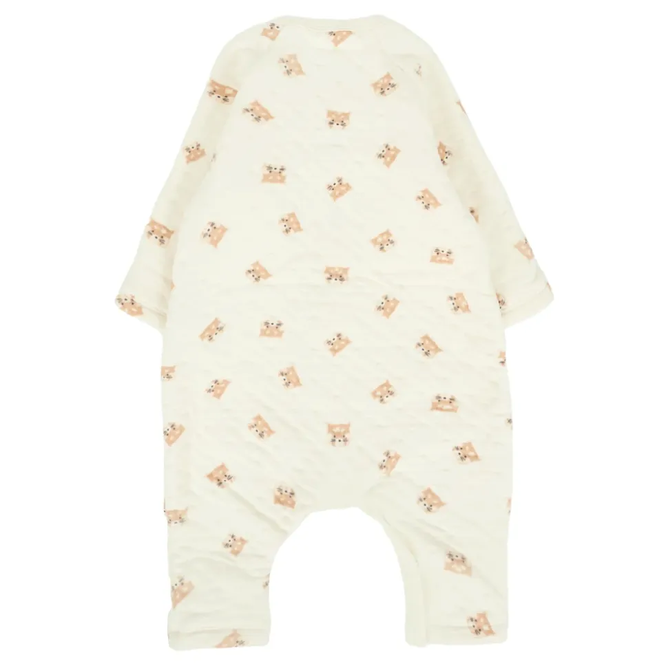 Kleed je kleintje in stijl met deze ivoorkleurige, lange jumpsuit van Petit Bateau. Gemaakt van gewatteerde buisvormige gebreide stof, met een ronde hals, drukknoopsluitingen aan de voorkant en tussen de benen, en een schattig rood panda-design overal. Gemaakt van 75% katoen en 25% polyester, is deze jumpsuit zowel comfortabel als gemakkelijk te onderhouden. Machinewas op 40°C.