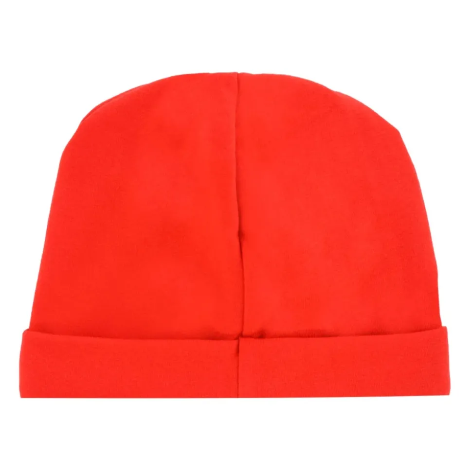 Voeg een vleugje kleur toe aan de outfit van je kleintje met deze rode pet van Moschino Kids. Gemaakt van een mix van katoen en elastaan, heeft deze pet een omslag en is versierd met de iconische Teddybeer en cirkelvormig logo. Machinewasbaar op 30°C.