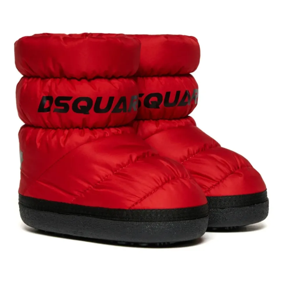 Dsquared2 Kids sneeuwlaarzen gemaakt van rood gewatteerd nylon met donsvulling, urban stijl, gepersonaliseerd met zwart contrasterend logoprint, polyester boven- en voering, thermoplastische zool, perfect om van de winter buiten te genieten. Gemaakt in Italië.