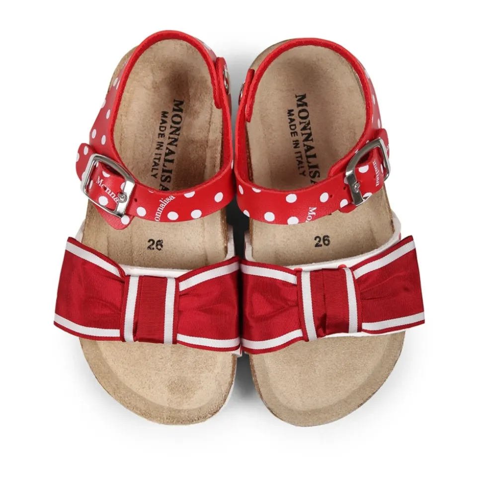Upgrade de zomerse stijl van je kleine meid met deze rode sandalen van Monnalisa. Gemaakt in Italië, deze sandalen hebben een rubberen zool, enkelband met gespsluiting en een grosgrain strikdetail op het bovenste deel. Gemaakt van 100% polyurethaan.