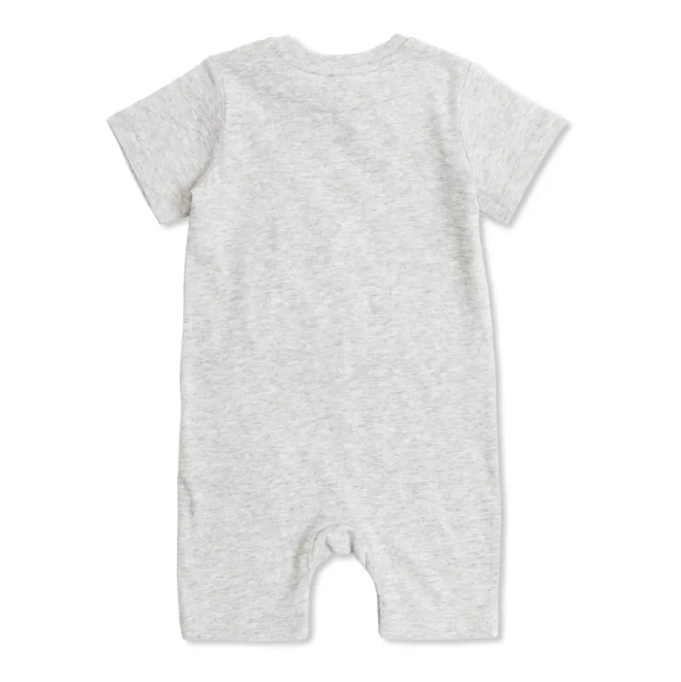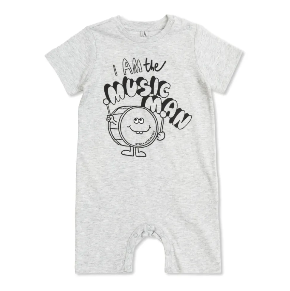 De Stella McCartney romper met print combineert een uitzonderlijk zachte katoenen knit met een opvallende grafische print voor comfortabel dagelijks gebruik. Belangrijkste kenmerken: Grijs | Katoen | Uitzonderlijk zachte knit | Ademende stof | Drukknoopjes op de schouder voor eenvoudig verschonen | Netjes afgewerkte naden | Ronde halslijn | Korte mouwen en korte pijpen | Grafische print aan de voorkant met “I am the MUSIC MAN” en designerlogo | Samenstelling & onderhoud: Katoen
