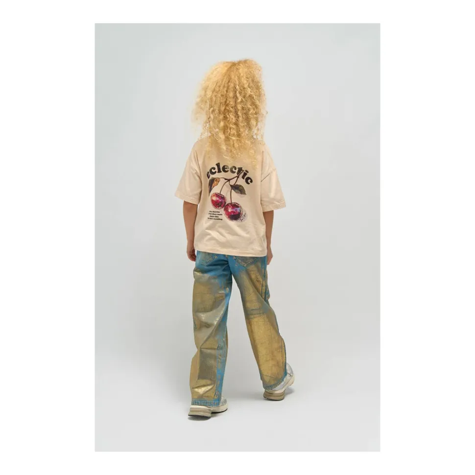 De NIEUWE Rosanna Wide Jeans combineren klassiek denim met een metallic gouden coating voor een opvallende wide-leg stijl. Ze zijn ontworpen om gemakkelijk te stylen en geven een gedurfde finishing touch aan zowel alledaagse looks als gekledere outfits. Belangrijkste kenmerken: Lichtblauw | Blauw | Katoen | Verstelbare elastische tailleband met interne knopen | Haak- en ritssluiting aan de voorkant | Riemlussen | Zakken voor en achter | Wide leg silhouet | Gouden glitter coating | Five-pocket jeans styling | Afmetingen & pasvorm: Relaxte pasvorm | Wide-leg silhouet | Samenstelling & verzorging: 100% Katoen | Machinewas 30°C, fijne was met soortgelijke kleuren. Niet bleken. Niet in de droogtrommel. Binnenstebuiten strijken op lage temperatuur (max. 110°C) zonder stoom. Kledingstuk kan tot 5% krimpen.