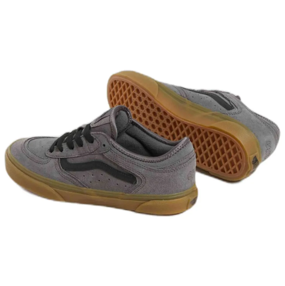 De Vans Rowley Shoe combineert een leren bovenwerk met een rubberen zool voor skate-geïnspireerde dagelijkse schoenen. Model geïdentificeerd als Rowley — productcode VN000E52DMU1. Belangrijkste kenmerken: Grijs | Gris | Leer | rubberen zool | Textiele voering | Skate-geïnspireerd silhouet | Samenstelling & onderhoud: Leer | Textiel | Rubber