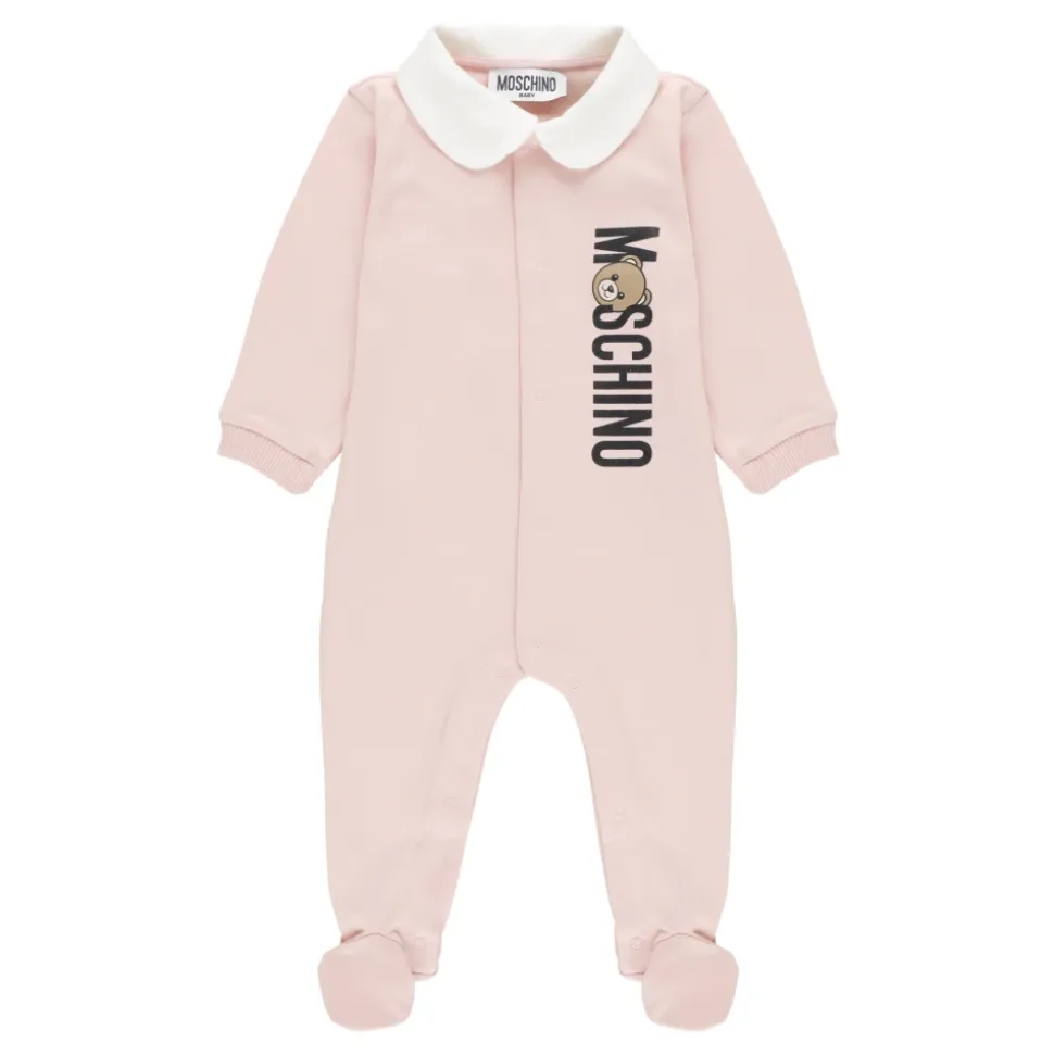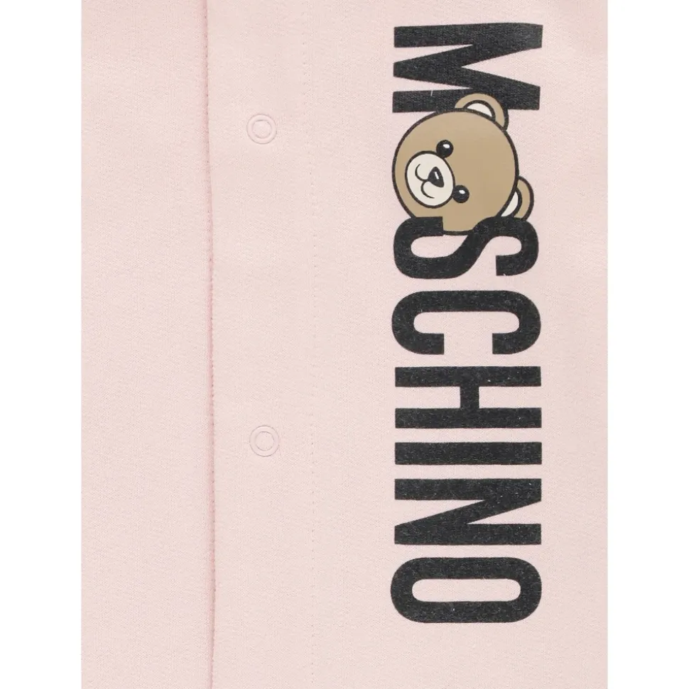 Kleed je kleine jongen in stijl met deze roze Moschino Baby katoenen jumpsuit. Met een contrasterende kleur kraag, lange mouwen, knoopsluiting aan de voorkant en een logo opdruk aan de voorkant in een contrasterende kleur.