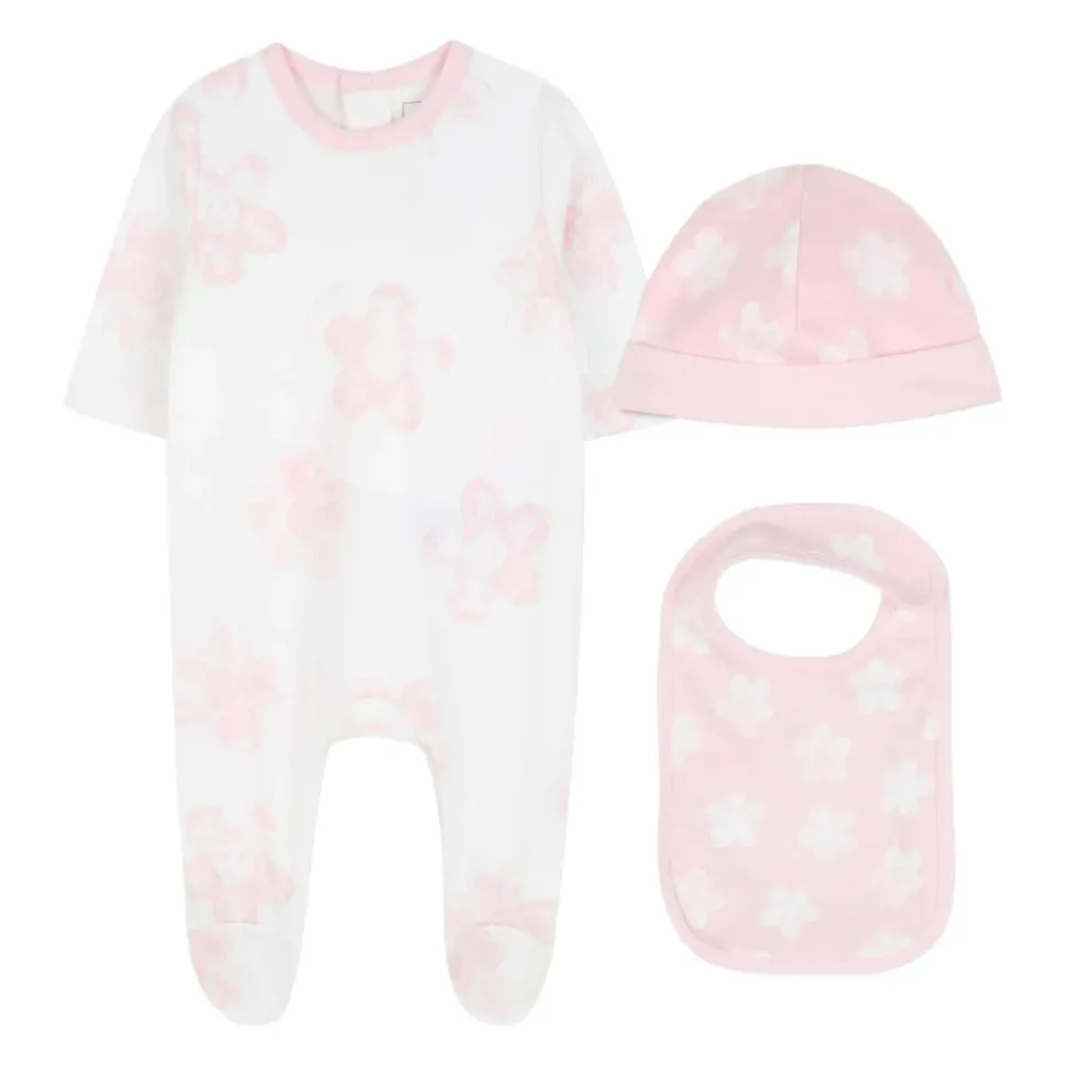Kleed je kleintje in stijl met deze schattige roze babygrow set van Little Marc Jacobs. De set bestaat uit een babygrow, slabbertje en muts, allemaal met een charmante all-over roze bloemenprint. Gemaakt van 100% katoen is deze set zowel comfortabel als gemakkelijk te onderhouden. Perfect voor dagelijks gebruik of als attent cadeau.