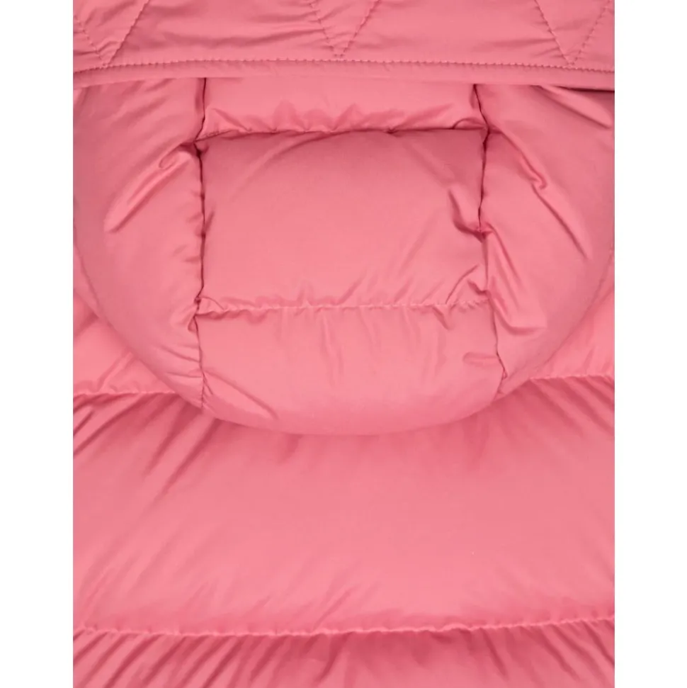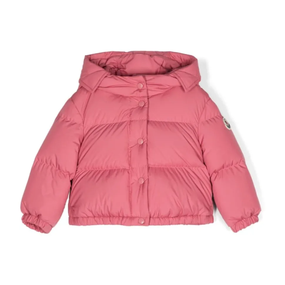 Blijf warm en stijlvol in deze Moncler roze winterjas voor meisjes. Gemaakt van minstens 50% gerecyclede materialen, deze polyester jas heeft een gewatteerd ontwerp met ganzendons, een quilted voorkant, drukknoop- en ritssluiting, klassieke capuchon, opstaande kraag, lange mouwen, logopatch op de mouw, elastische manchetten, twee zijdelingse insteekzakken, volledige voering en elastische zoom. Perfect voor de koudere maanden!