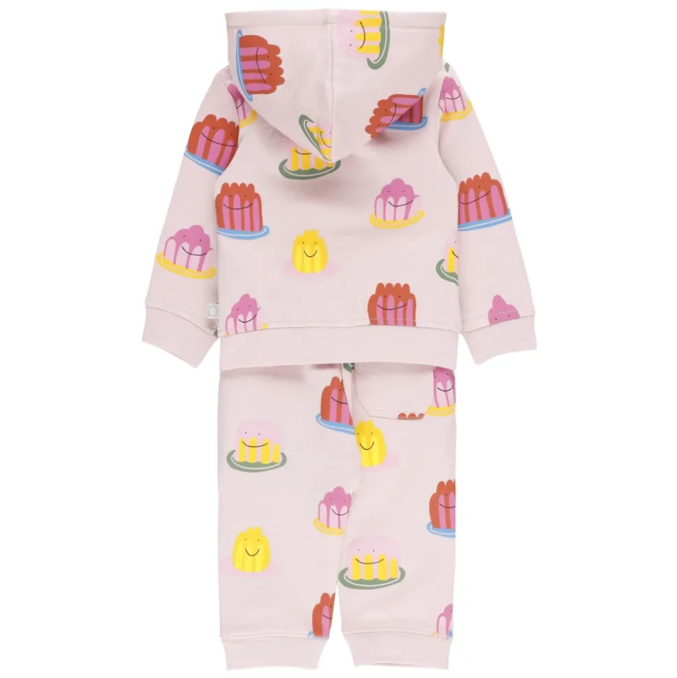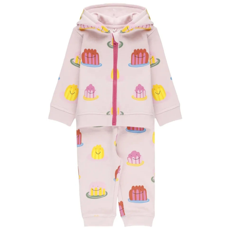 Kleed je kleine meisje in stijl met deze roze Stella McCartney Junior tweedelige jumpsuit. Met capuchon, ritssluiting aan de voorkant, lange mouwen en een contrasterende kleurenprint overal. De broek heeft een elastische taille, trekkoorden, twee zijdelingse steekzakken en een achterzak.