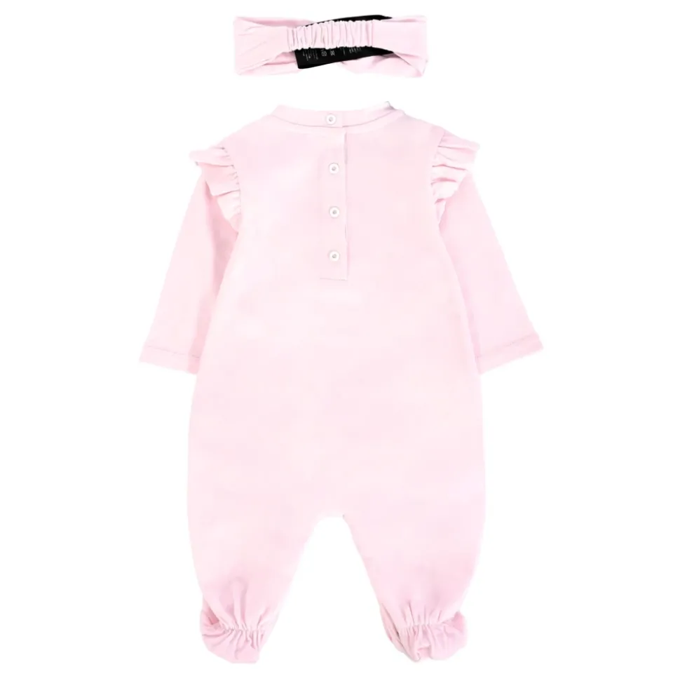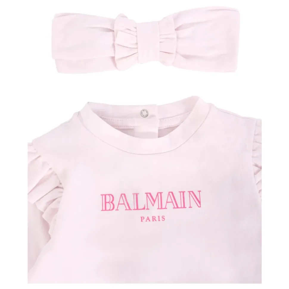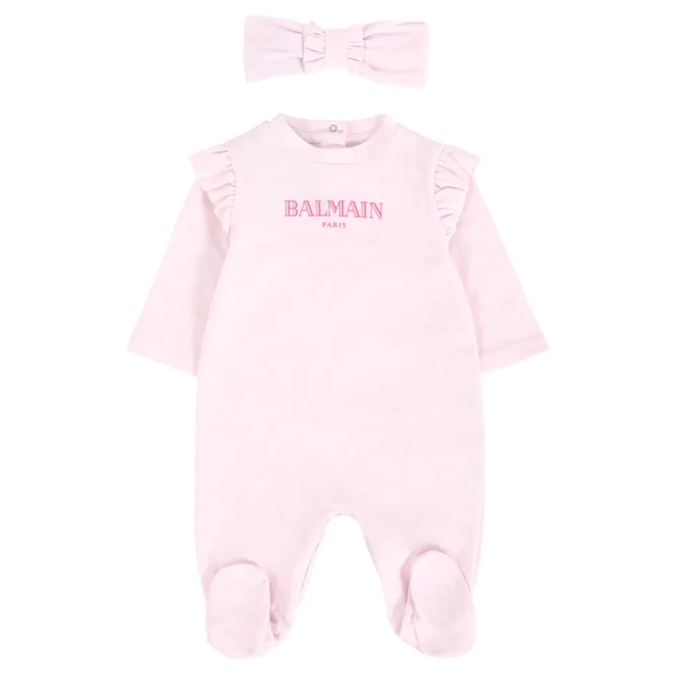 Kleed je kleintje in stijl met deze schattige Balmain katoenen roze babygrow set. De set bevat een babygrow en een hoofdband, beide gemaakt van lichtgewicht katoen met ruches en een logoprint. Met lange mouwen, ronde hals, drukknoopsluiting en elastische band voor een comfortabele pasvorm. Alleen handwas.
