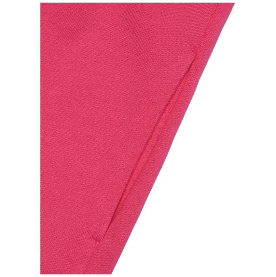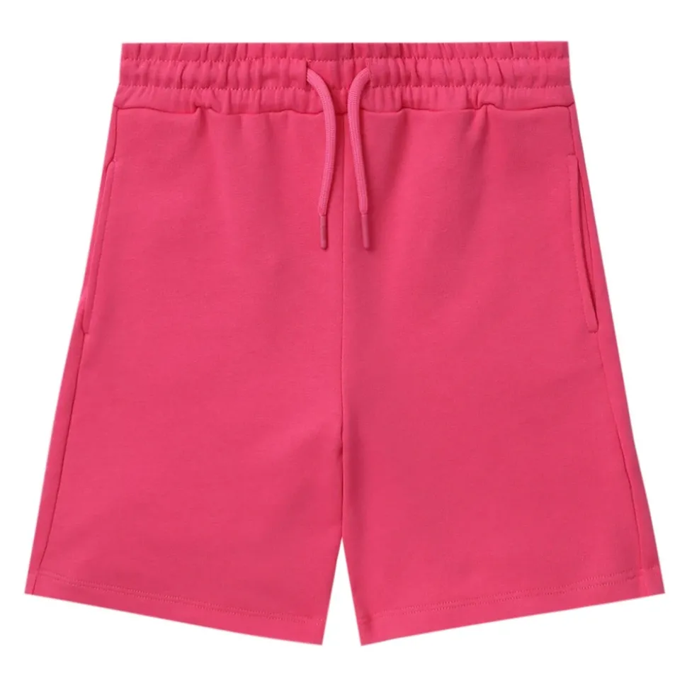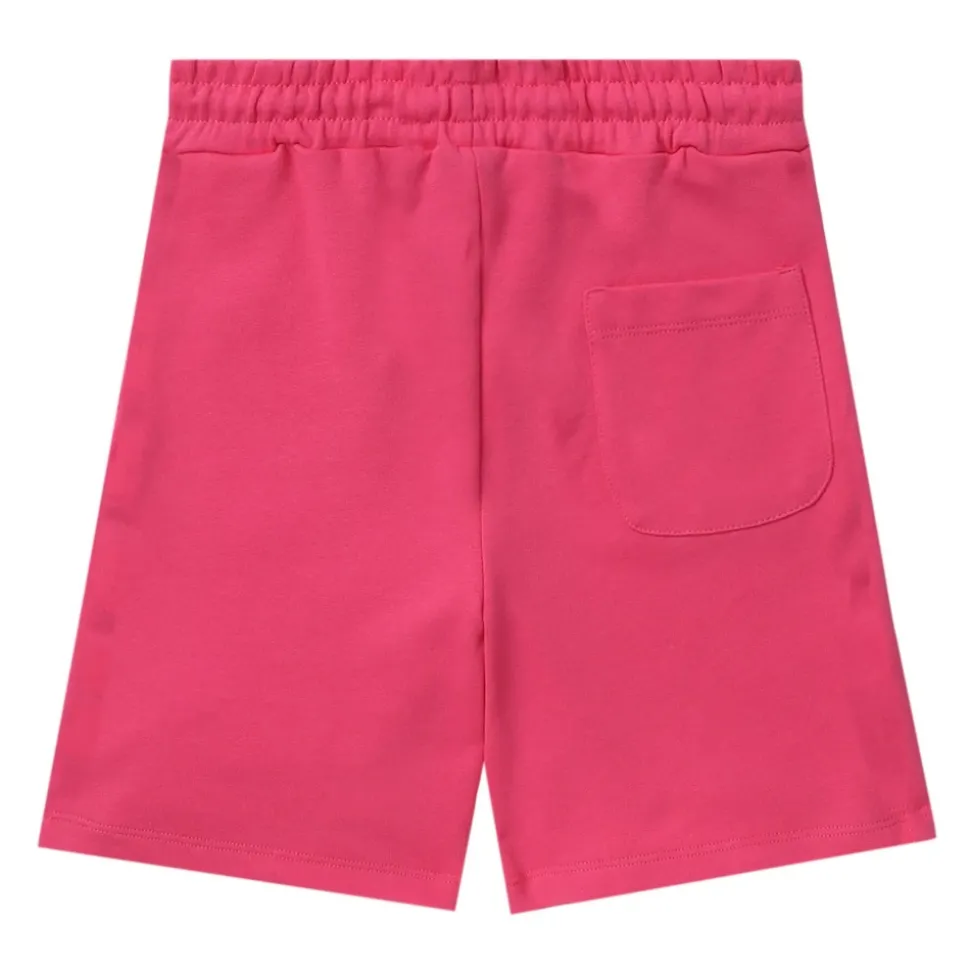 MSGM roze katoenen jersey shorts met logo print aan de zijkant, boven de knie lengte, elastische taille met trekkoord, zijzakken, transparante achterzak.