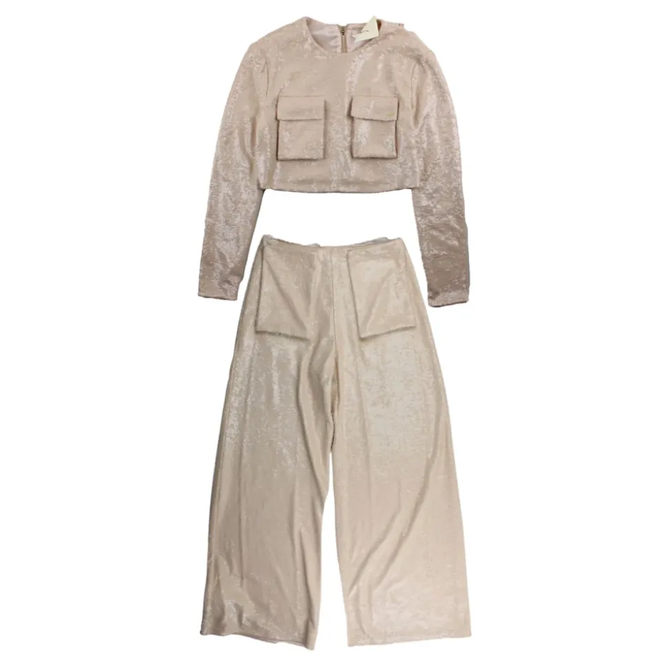 Roze Pailletten Cropped Shirt en Palazzo Broek